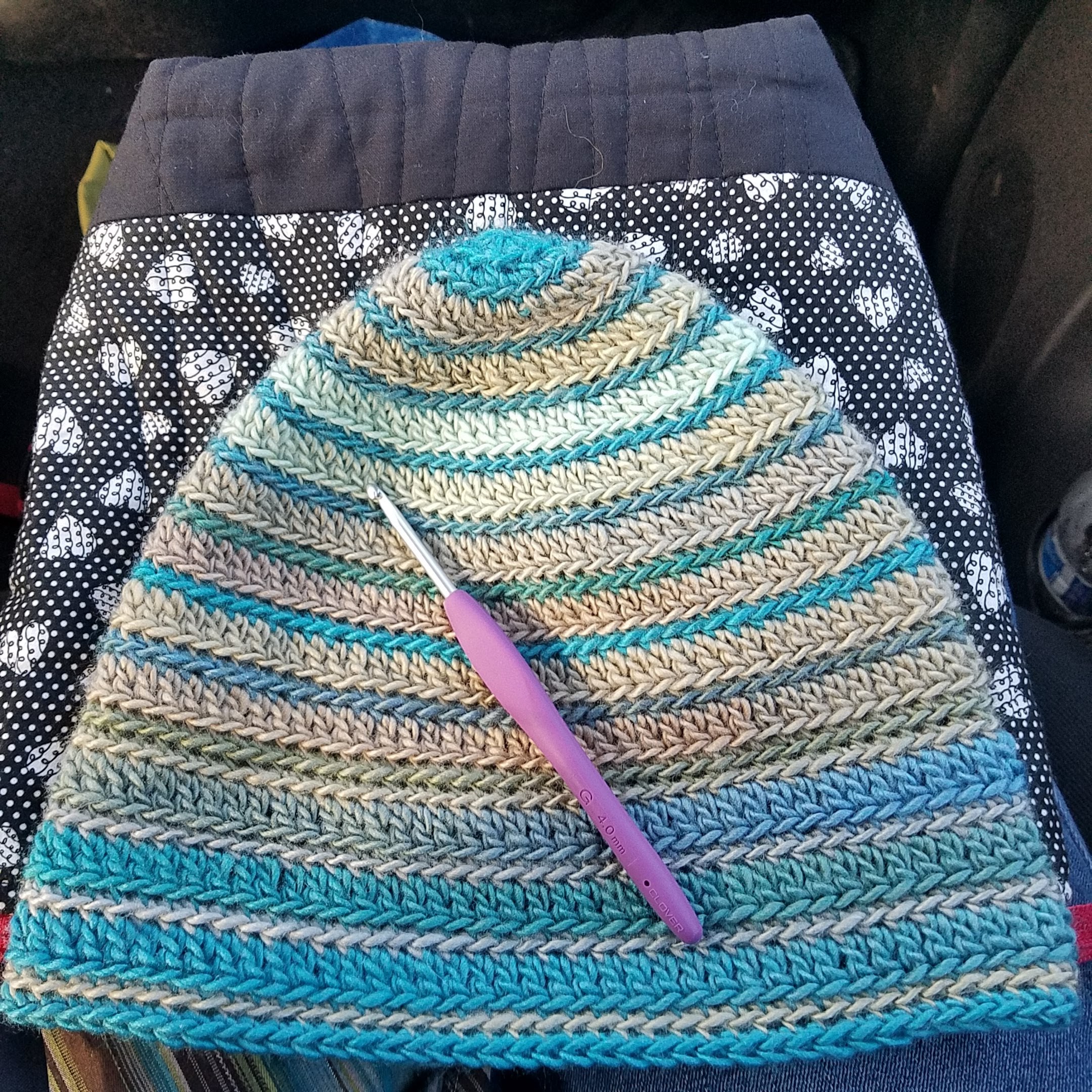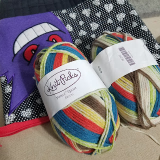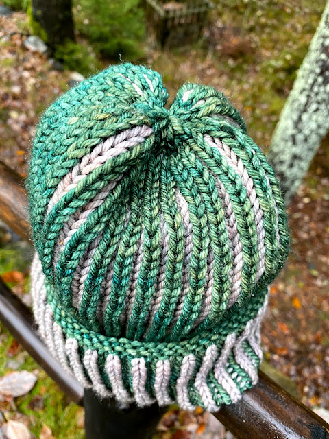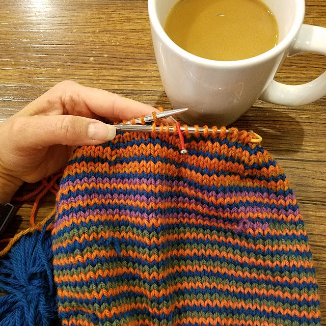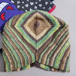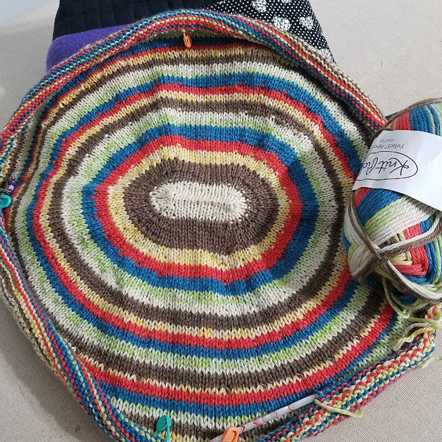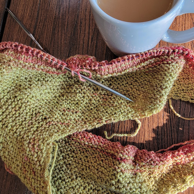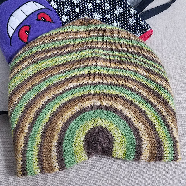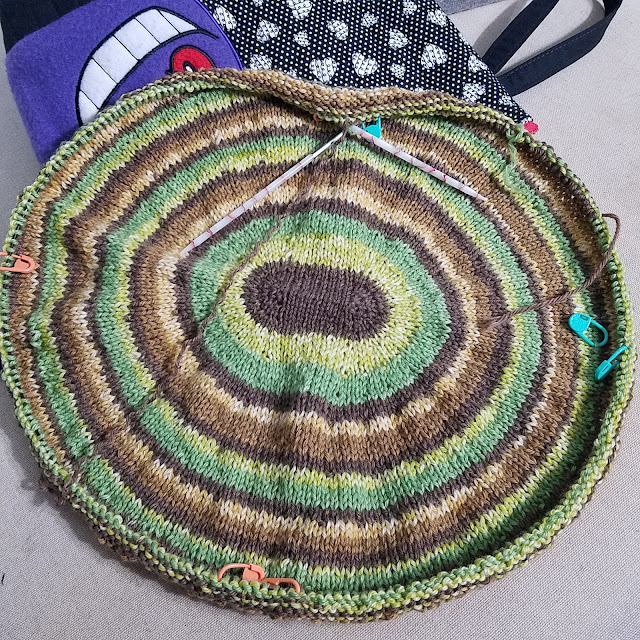 Then joined in the round. I'm using two cakes of sport weight from Freia Fine Handpaint Yarns. My hope is to end up with a small poncho. I think it more likely I will end up with a cowl. I'm going to soldier on in any case. I love watching ombre yarns change colors.