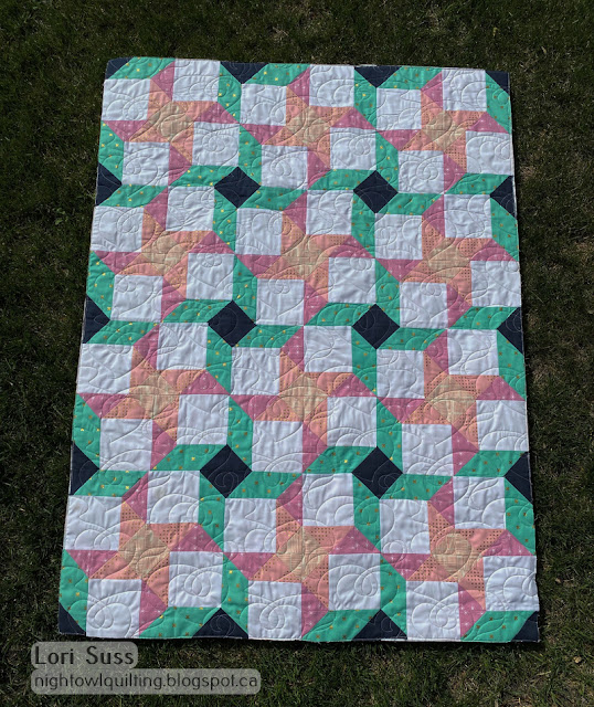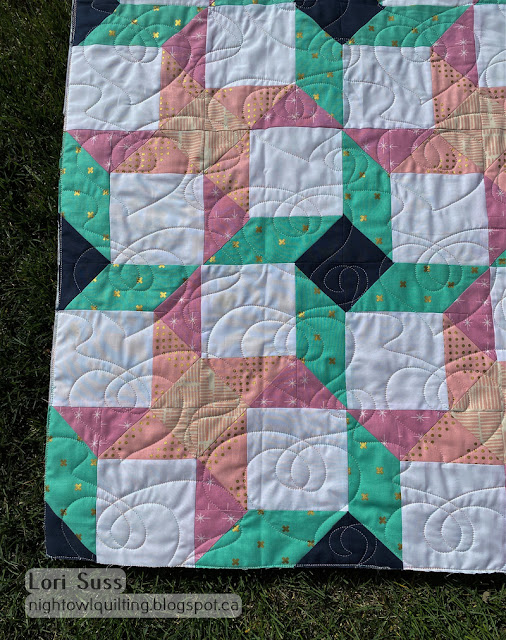 Susan left the quilting choice up to me and I thought the leaves of the Novaya Zhihn pantograph were a nice compliment.