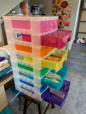 It's been an interesting week already, but I'm happy to say that I have had time to play with my scraps! I spent part of the day today repurposing some storage...