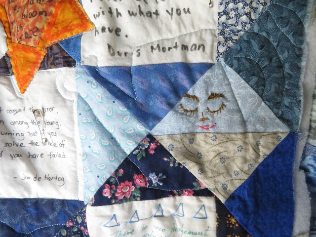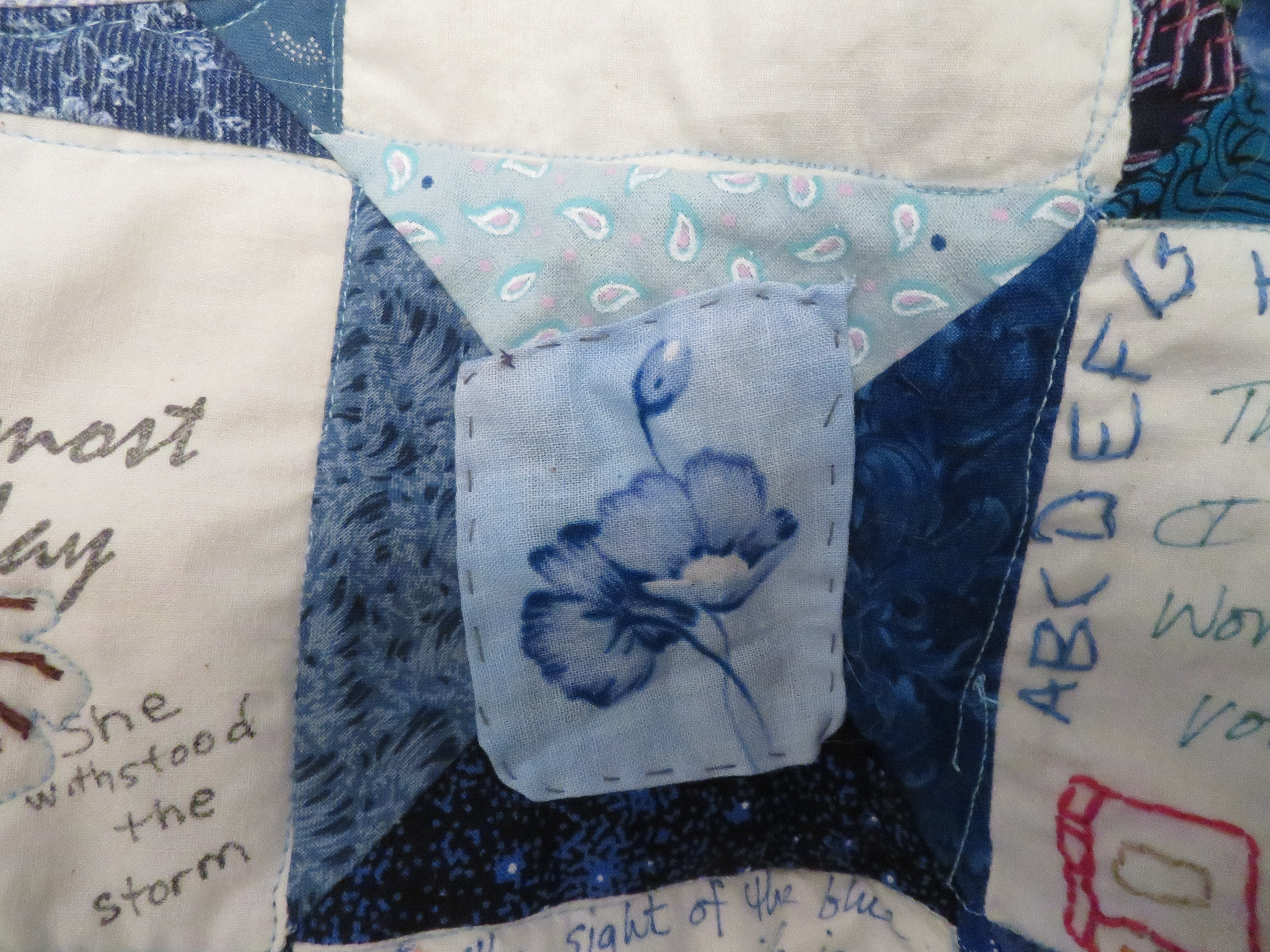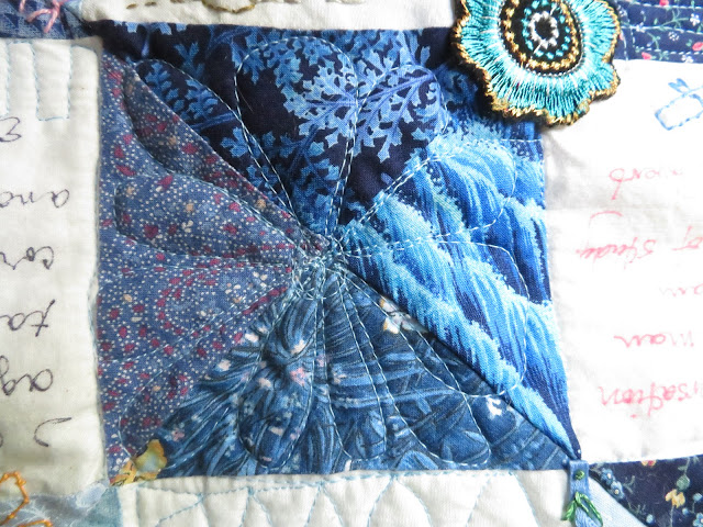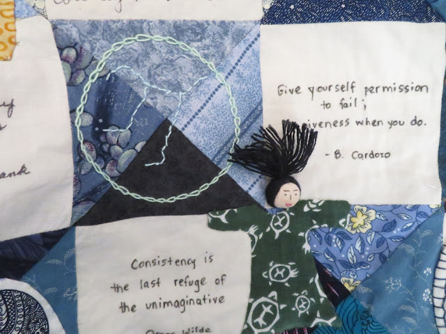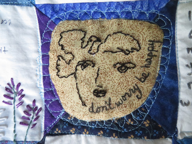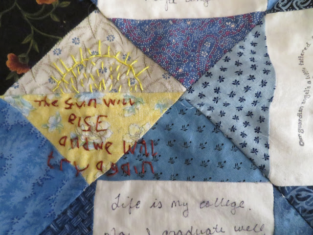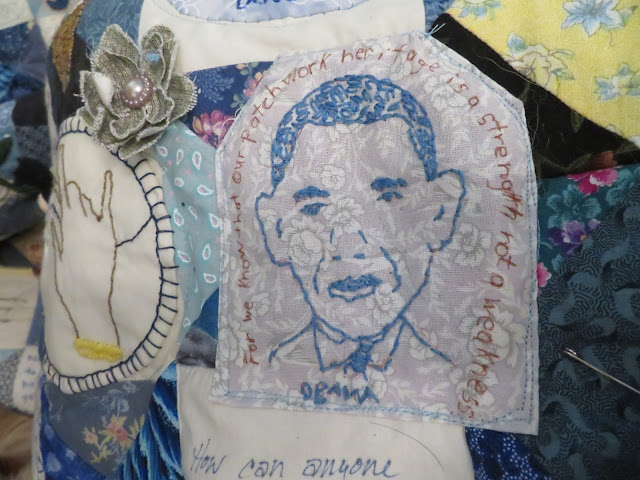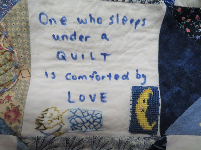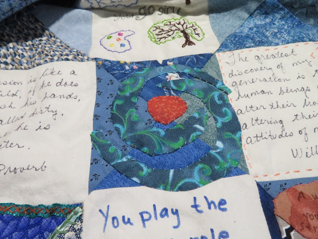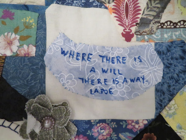When I was showing the additions I was making to the Inspirational Quote Crazy Quilt, lots of my blog friends said they would like to see the quilt in person. The photographs just don't show the size of the additions, how they work with the other motifs that are around it, or where in the quilt the motifs are.