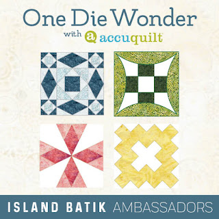 This month, the project theme for us Island Batik Ambassadors is making one-block quilts using some of the new Block on Board dies from Accuquilt!