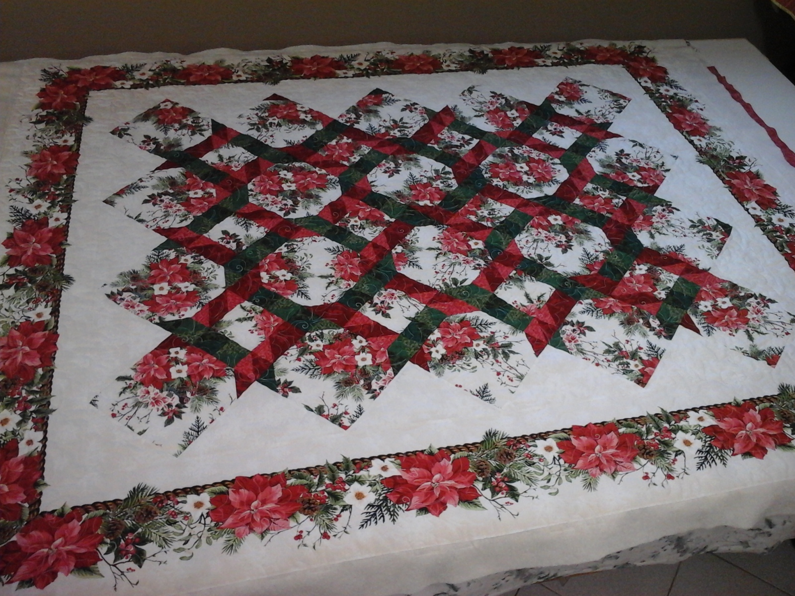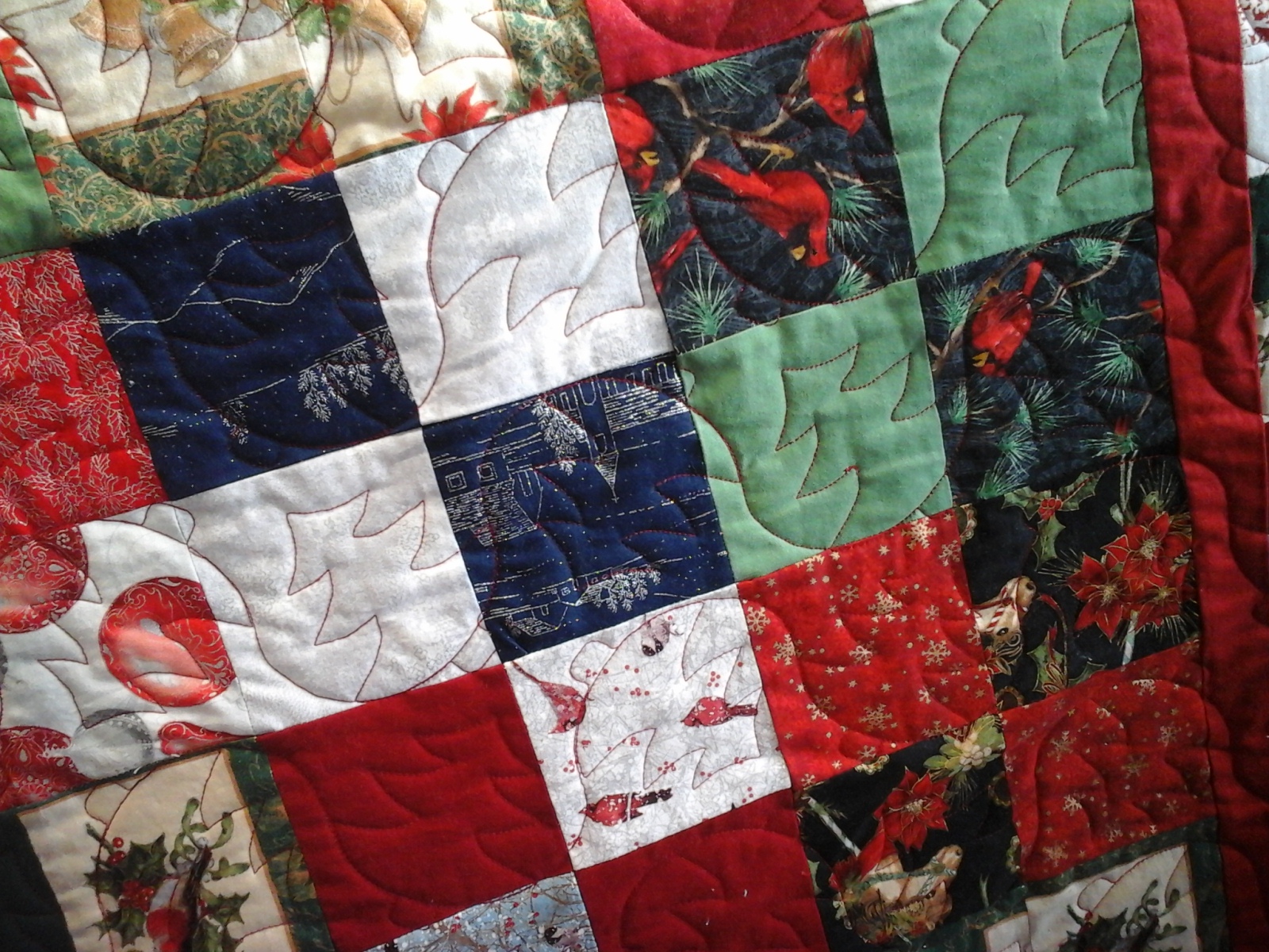APPLE CORE The pieces were cut using JAWS, and I used a pattern from the Accuquilt web site. I increased the size of the quilt by quite a bit - it's plenty big enough for DH to take a nap under.