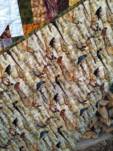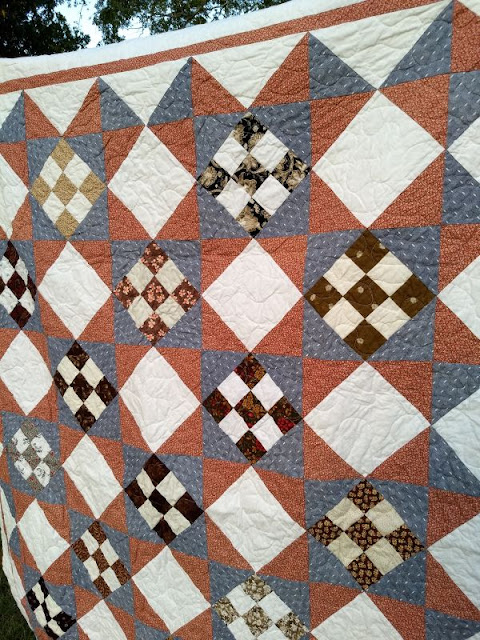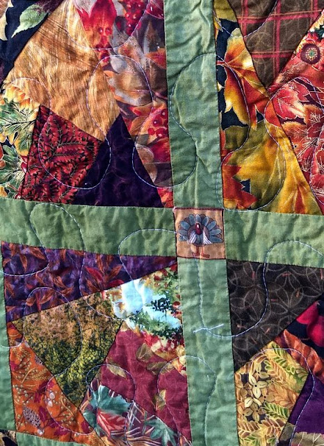 I love the gingerbread man backing this quilt! The rest of these were assembled by a combination of Pam M. and me and quilted by me.