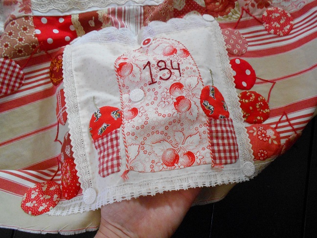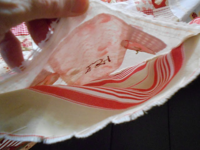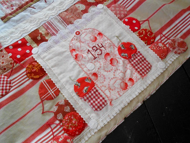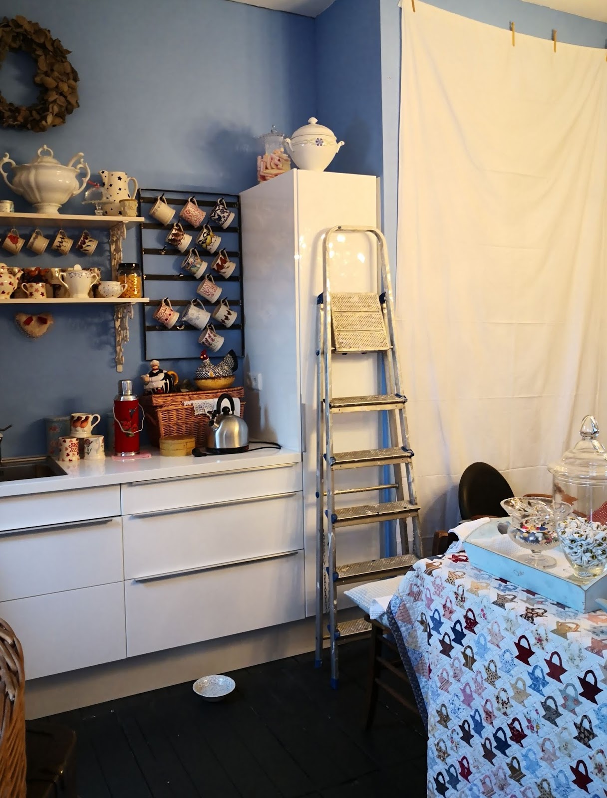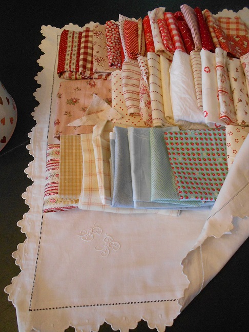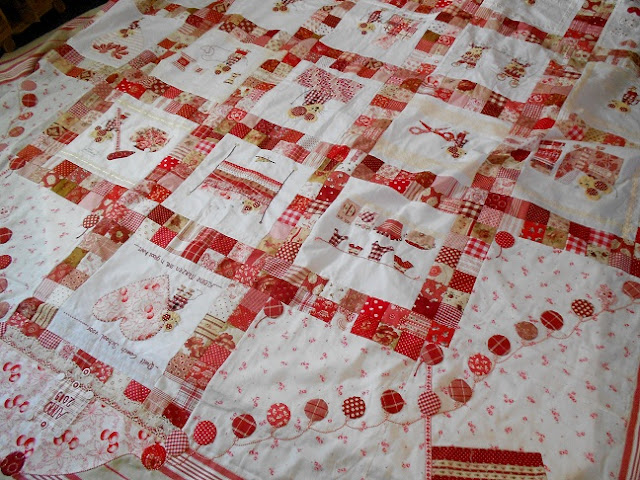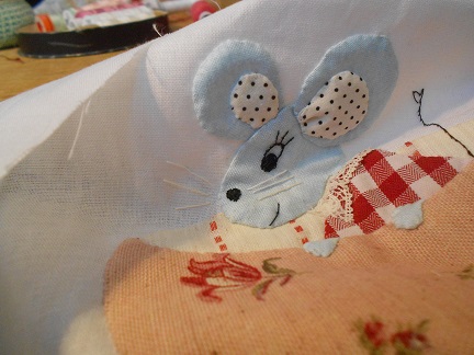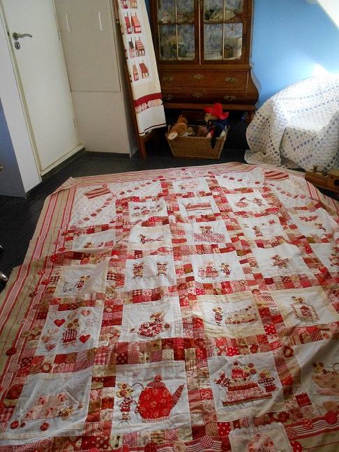 en ligt beneden in de woonkamer op doorquiltsteekjes te wachten.