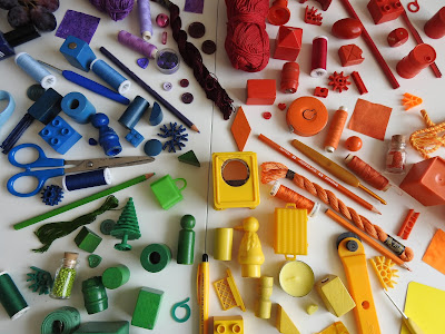 De huisjes voornamelijk wit, de raampjes zwart en de daken natuurlijk....rood!