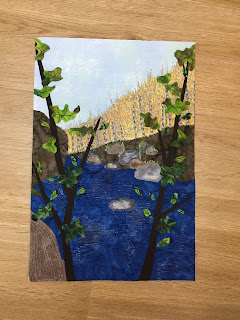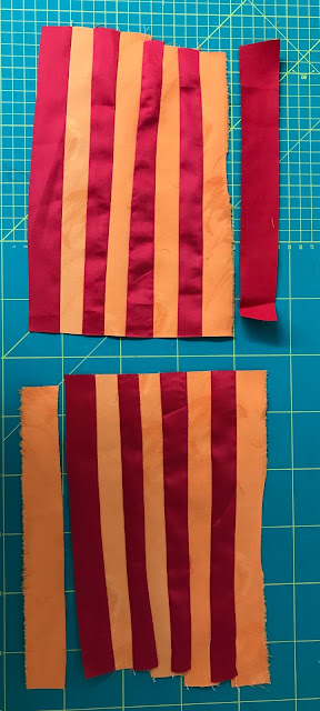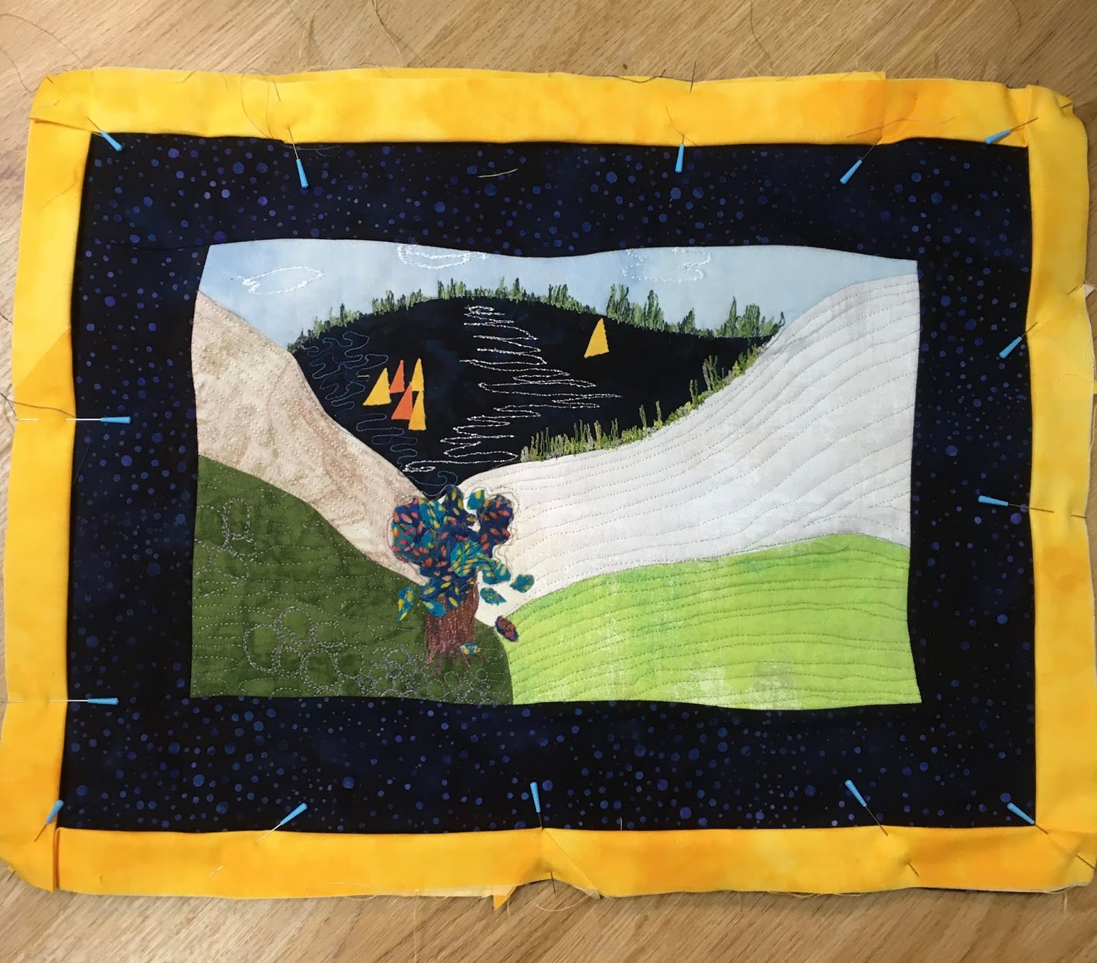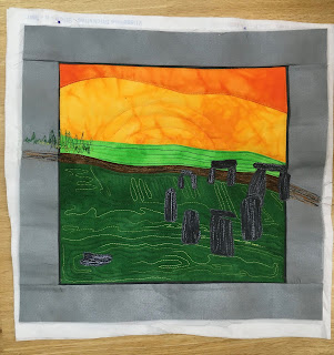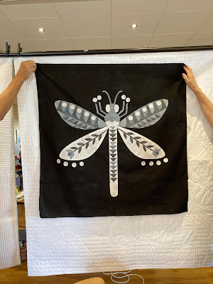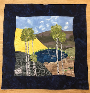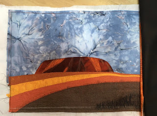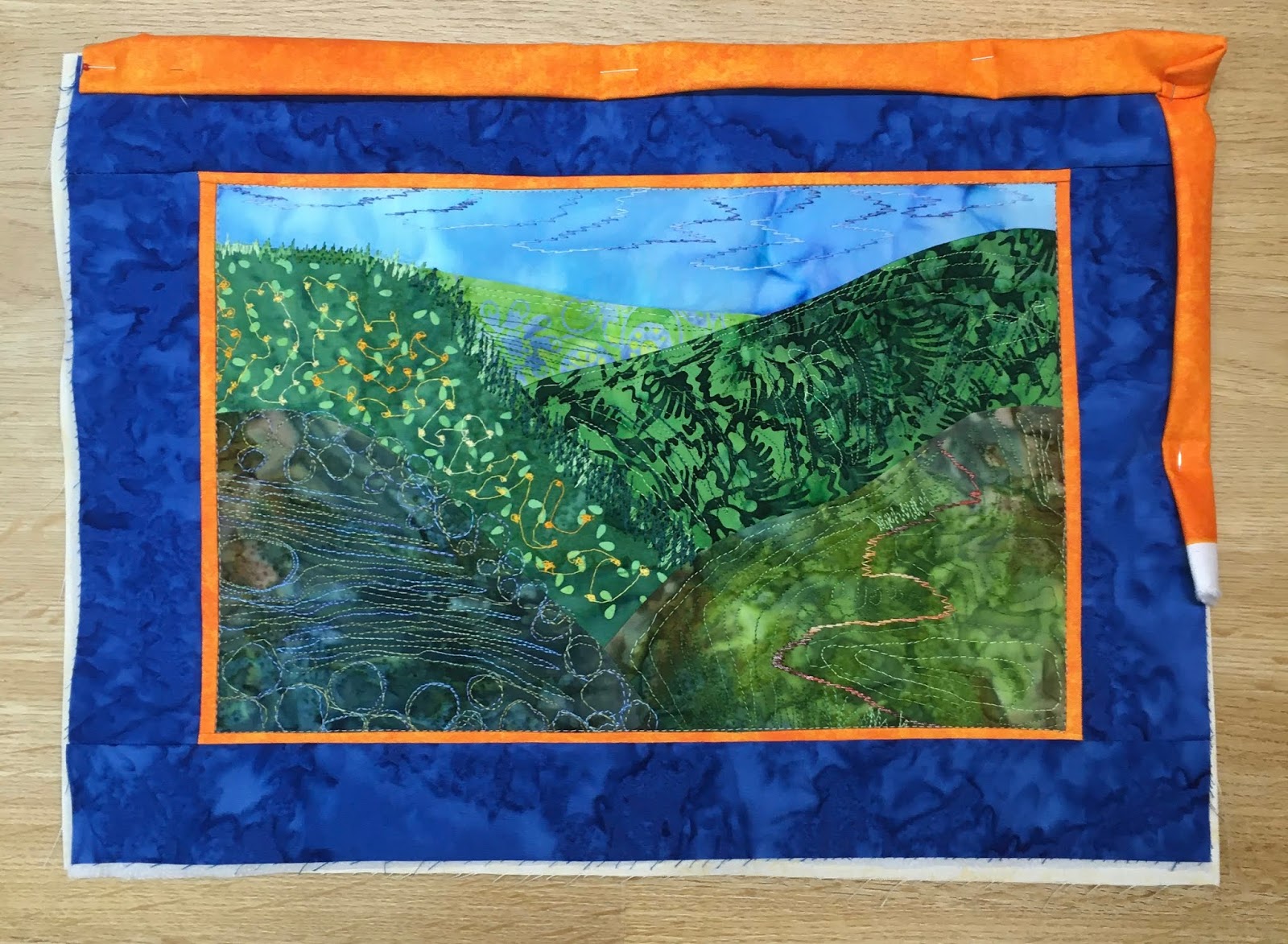 Es ging um eine Kombination aus Patchwork und Applizieren mit Maschine. Eine Applikationstechnik, die ich vorher noch nicht ausprobiert habe (Stärkeapplikation).