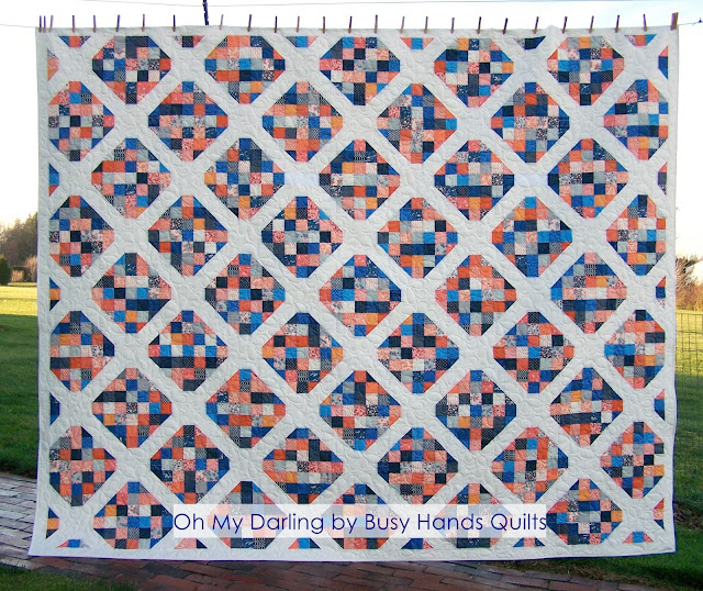 My Oh My Darling quilt pattern has been completely updated, both inside and out, with new formatting and cover image. I've also changed the Queen size from a square to a rectangular quilt. This quilt pattern is jelly roll friendly and includes 6 sizes - Baby, Lap, Throw, Twin, Queen and King. This is the cover quilt in Garden Club by RJR Fabrics.