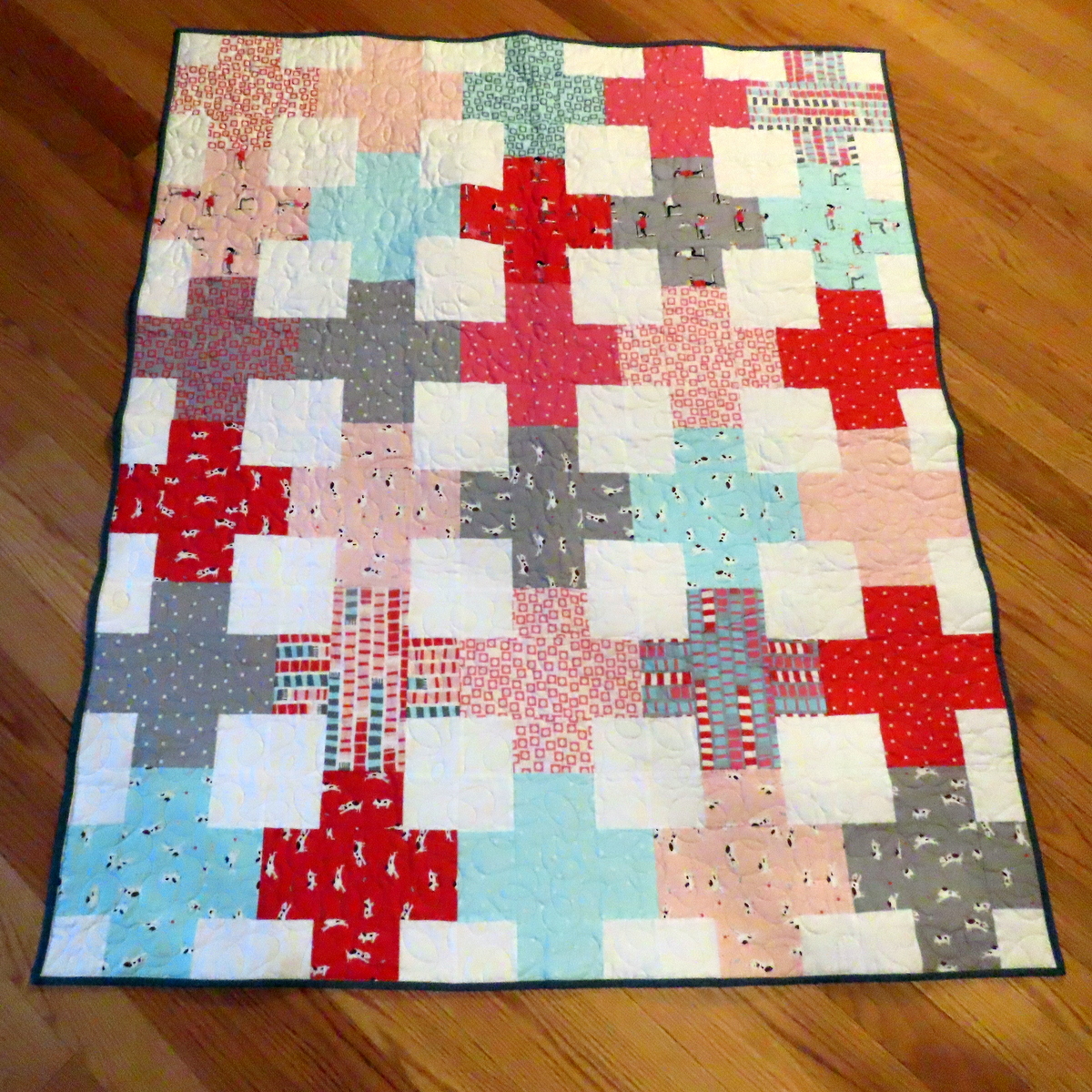 For the quilt back I used the left-overs from the layer-cake. The quilt measures 48" x 57".