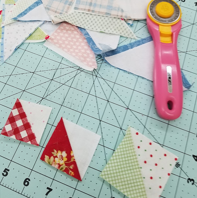 For the temperature quilt Pine Tree blocks, I get these triangle