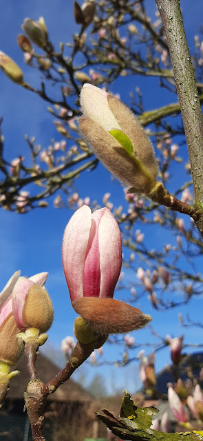 Deze foto's maakte ik afgelopen dinsdag toen het echt lenteweer was en ik bij een huis langs liep waar een enorme magnolia boom in bloei stond.