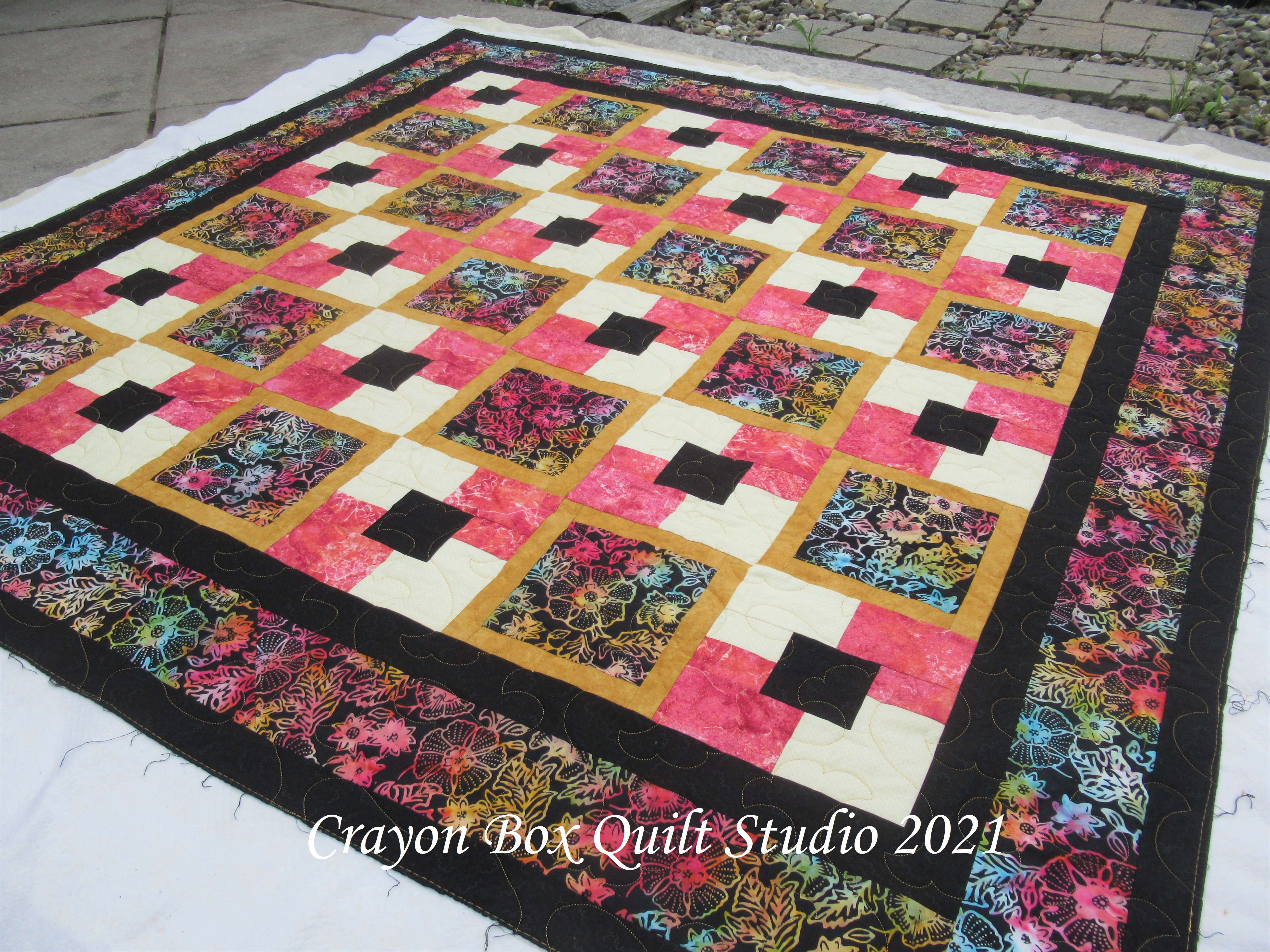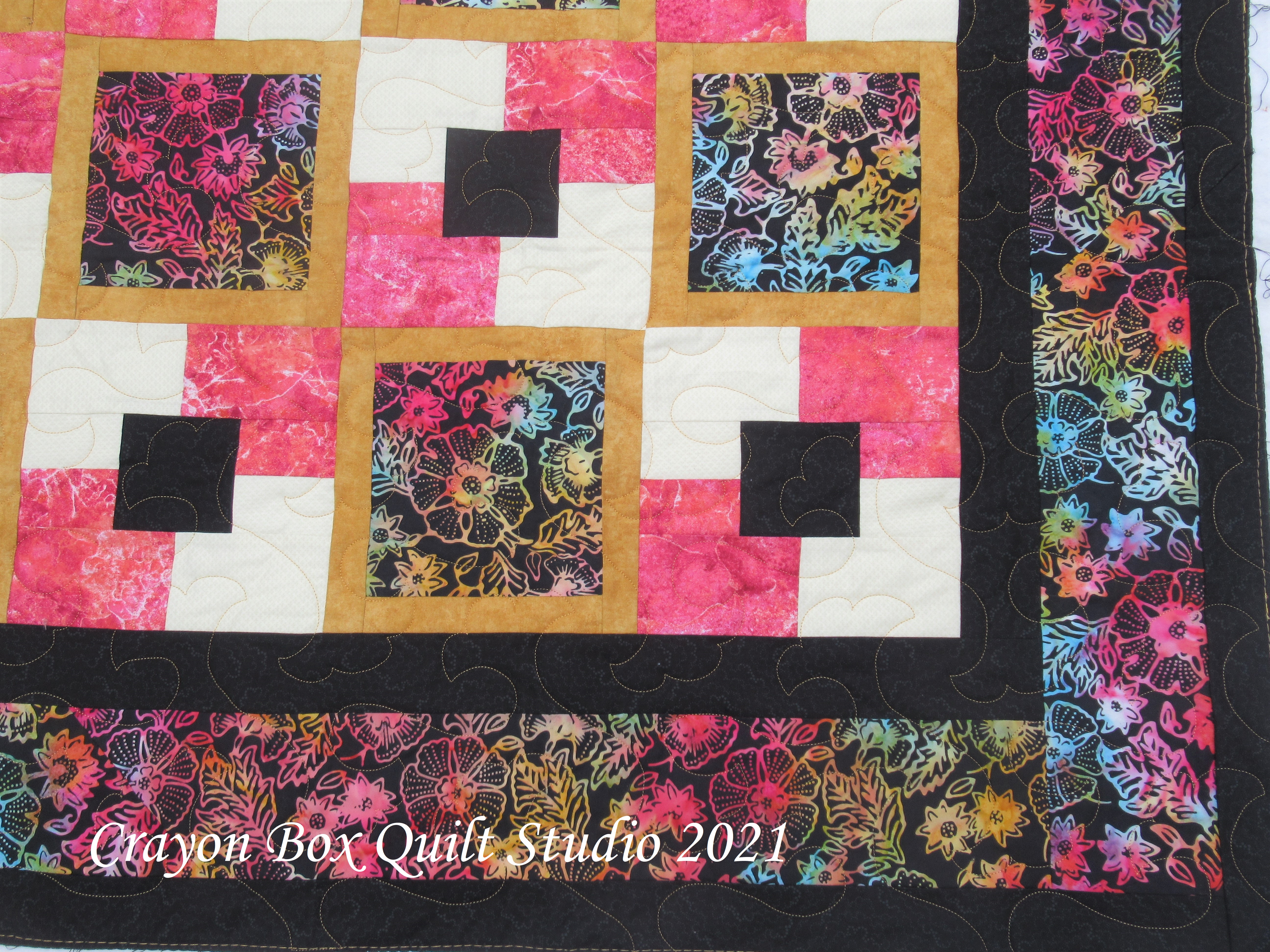 When my customer Kathy brought me her adorable chickens quilt, she also brought this pretty Pink and Black Flowers Block quilt.