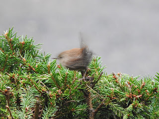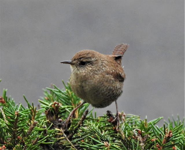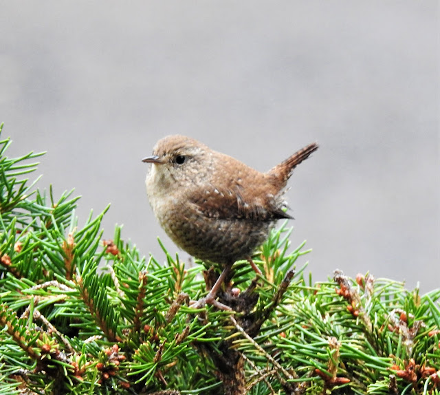 One of the things I love this week was getting a photo of a wren. I've often caught sight of them down by the pond because I think they like the heavy shrubbery on three sides. There is a meadow there as well and loads of grasshoppers which I know wrens are fond of. However, it was right in front of my kitchen window that I managed to grab two quick shots of this little guy while he was checking out the decaying plants.