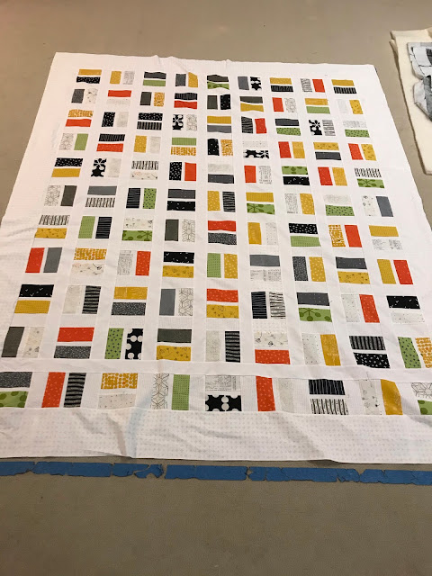 read moreI love jelly rolls. They are a reasonable way to place with a fabric collection, like this one - “quotation” by Zen Chic. These colors are not one I gravitate towards, but I really like how this quilt turned out. It’s 60” x 80” and will be looking for its owner once it’s quilted. And this will not be hand-quilted because the whites are all sort of heavy, ot the kind of fabric I want to needle. So I’ll baste this and put it in the “needs to be quilted”