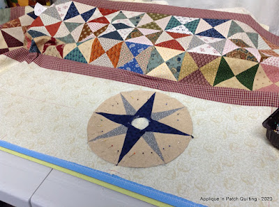 That wheel has now been appliqued on. One down, another thirteen to go. Today, another wheel will be pinned in place and so on. Perhaps by mid-December, this top should/could be done? Maybe?Now, how about a guessing game? Do you have any idea what this is?