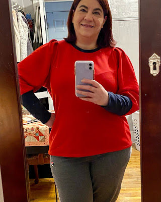 I kicked-off week 2 with my second Busan Top by Itch-to-Stitch. The red fabric is a double knit from Minerva and the navy is a gorgeous French Terry ...