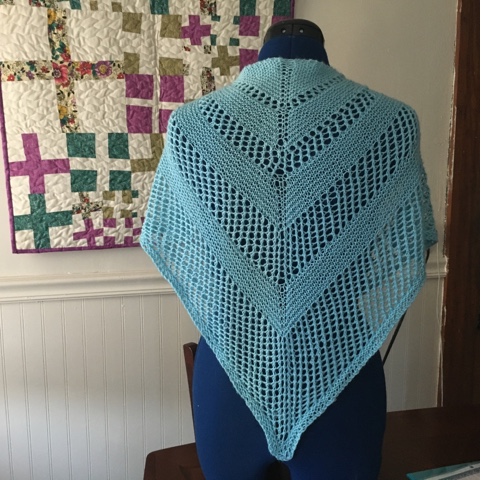 I have been knitting every chance I get, which isn't often since I have four kids and work full time. I am very excited about my first finish, which is the Reyna Shawl I was working on (free pattern on Ravelry here). This was my first shawl, and it's a Christmas gift, which I am very happy that I have finished on time. The yarn is Cloudborn Superwash Merino. I love it, its soooo super soft.