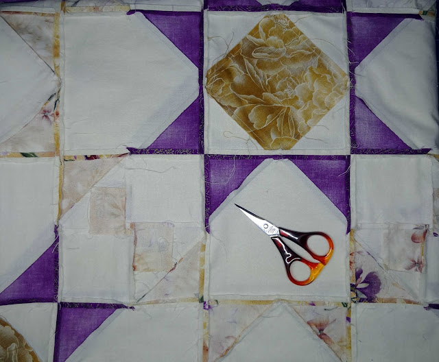 It's been a LONG time since I posted about this project -- last year in fact! The construction directions were released in January, I printed them out, and only now finally managed to finish the quilt top.