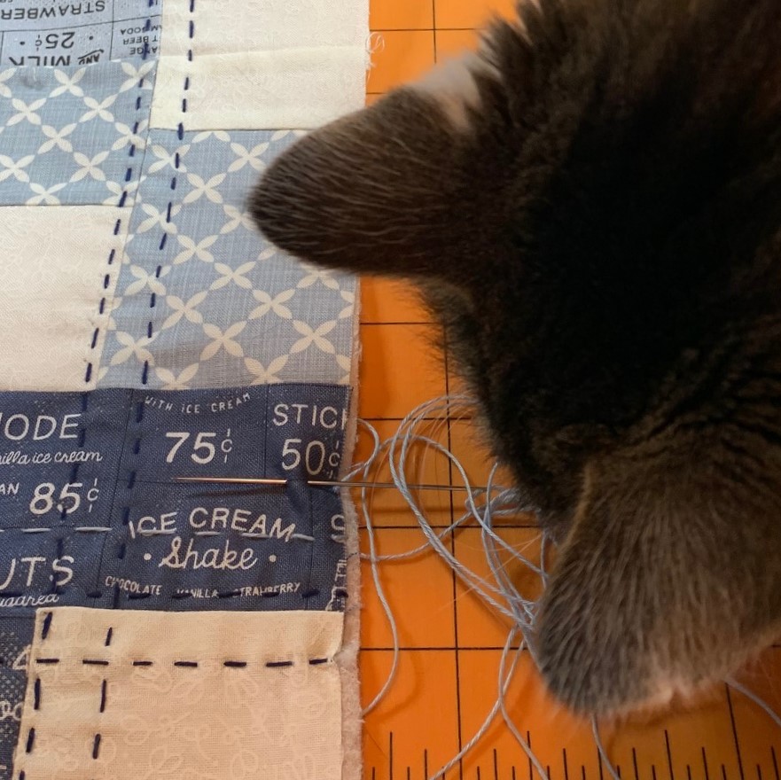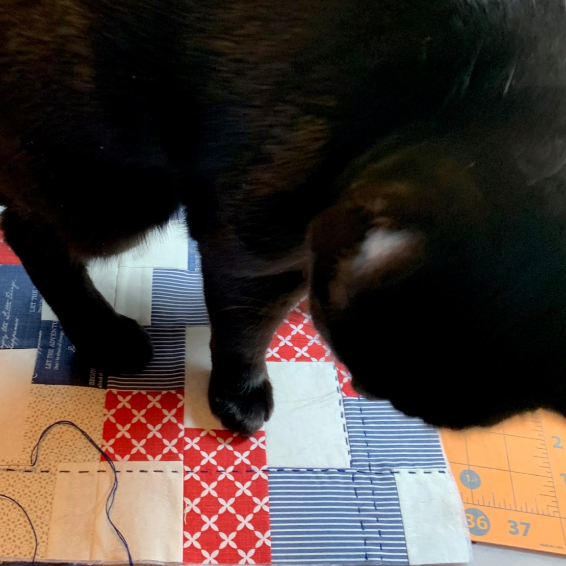 Sewing the Scrappy Irish Chain Dresden Plate Quilt Again.