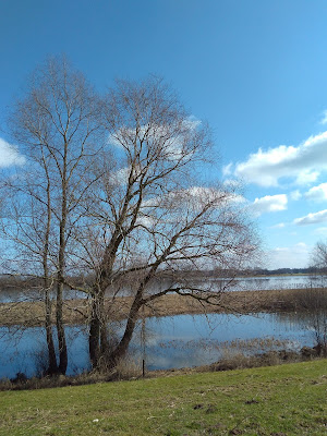 Water, blauwe lucht, wolken...vogeltjes, bloemetjes en bijtjes.