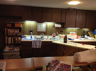 Our house was built in 1972. When the original owners remodeled the kitchen in 1985 they moved the old cabinets and sink to the basement. The past couple of weeks that double-basin sink has come in very handy. I can do meal prep in the bathrooms (his or mine) but those basins are not convenient for washing dishes.