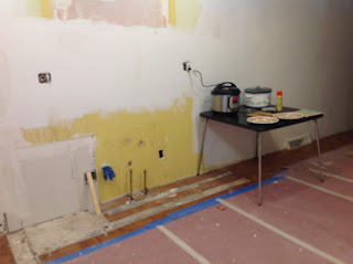 Below, right, shows the Instant Pot and crockpot on my 44-year-old card table. The microwave is set up in the garage.The kitchen and dining room walls had been covered in acres and acres and acres of floral wallpaper since 1985. When ...