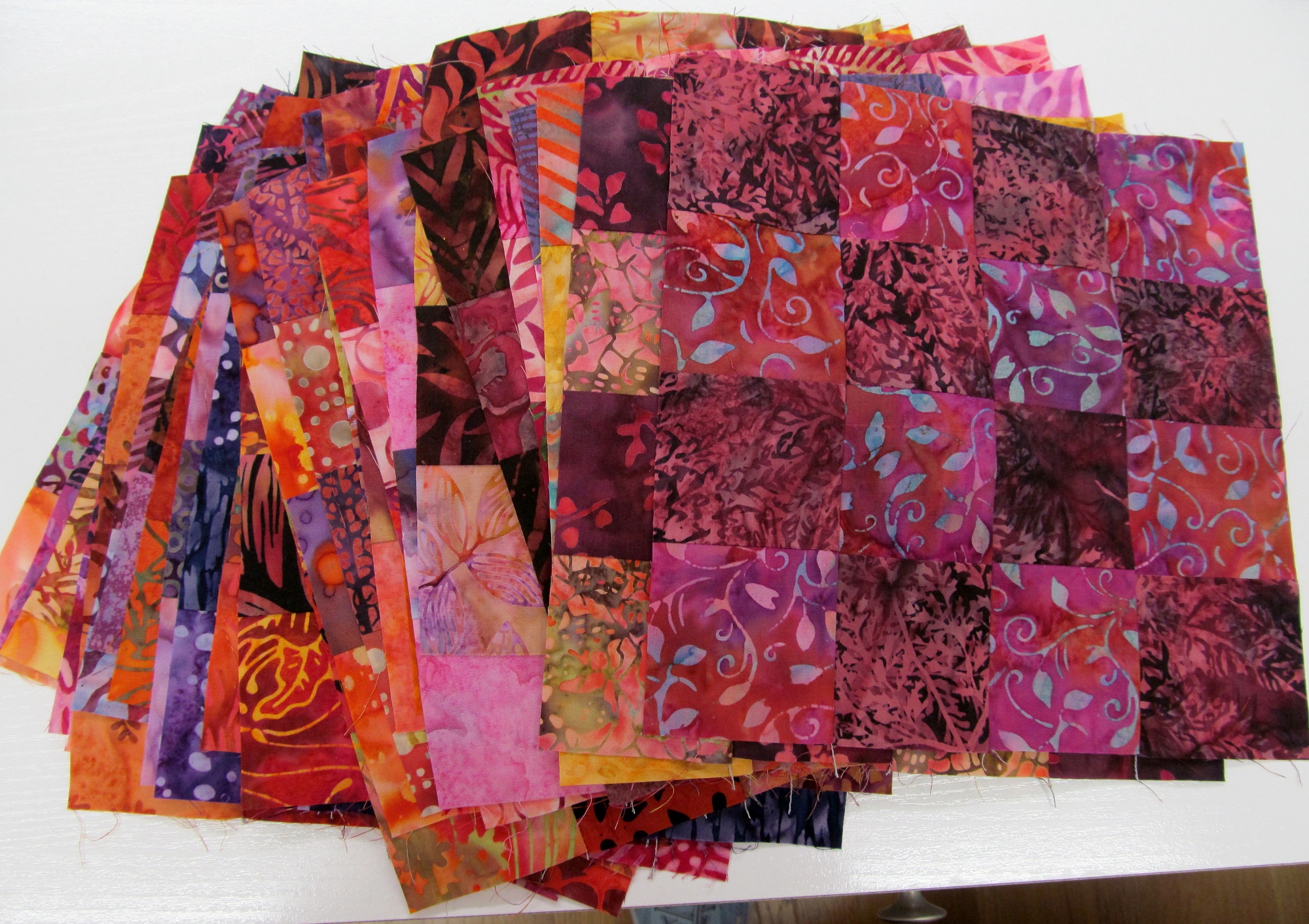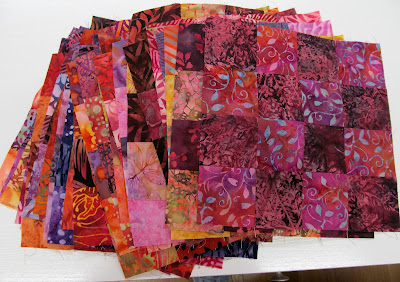 Even though this quilt is red to me there really are a lot of other colors in it. Mostly red, orange and yellow but since most of the prints are multicolor, a lot of other colors show up too.