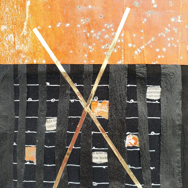 Våra svensk-danska utmaningar fortsätter. Vi skall göra sammanlagt 18 stycken collage var och nu är sex av dessa gjorda. Utmaningen är att var och en får ett kuvert med fyra olika element som skall bli ett collage 15 x 15 cm. De som är med är Lisbeth Degn, Yvonne Kervinen och jag.
