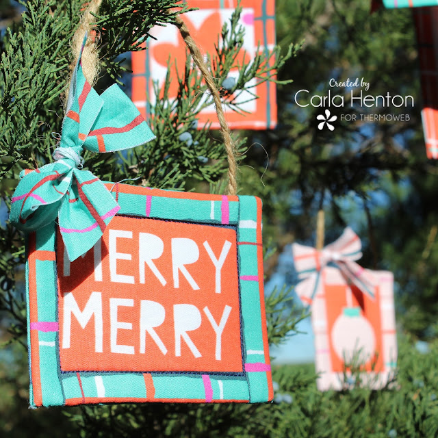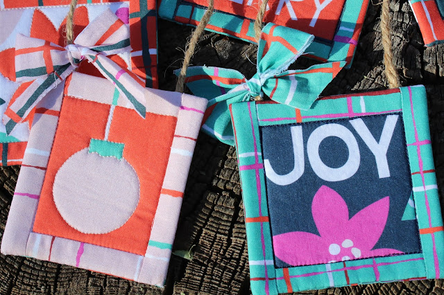 I completed two sets of these adorable felted wool ornaments. I had a bag full of these little wooden "handmade" tags so I add one to the back of each ornament.