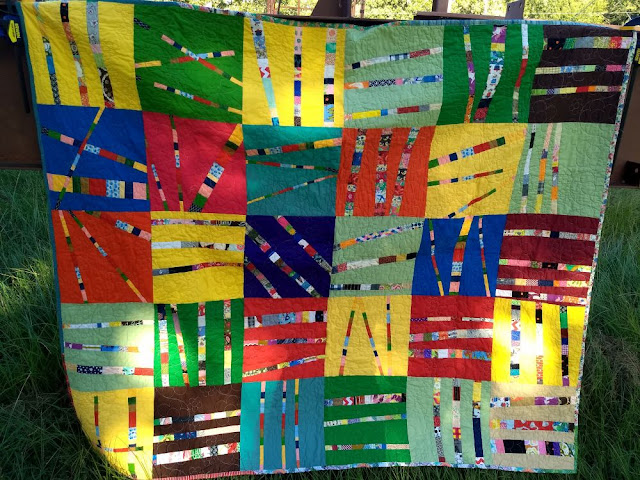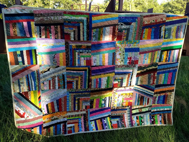 The two quilts in today's post were tops sent in by Donna. Volunteer Pam did the quilting on this large Scrappy Trips quilt with vintage fabrics.