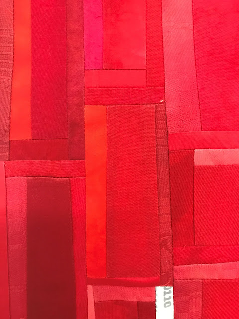 Gegen 40 Quilts wurden für den diesjährigen Challenge «drei gleich weit entfernte Farben im Farbkreis von Itten» an der heutigen Generalversammlung von patCHquilt in Lugano ausgestellt. Auch mein Quilt Stägeli uf Stägeli ab war dabei.