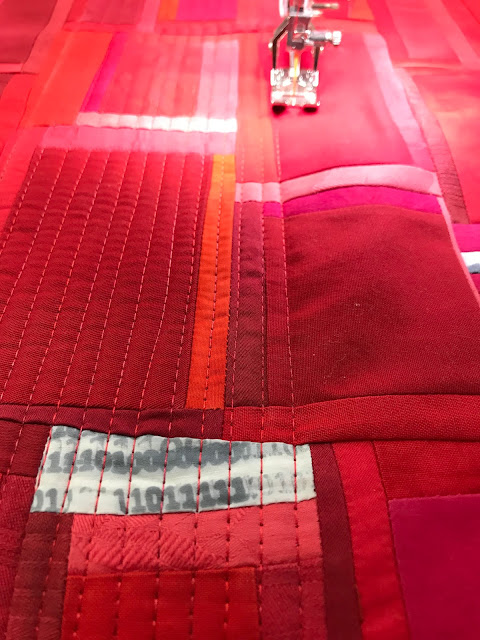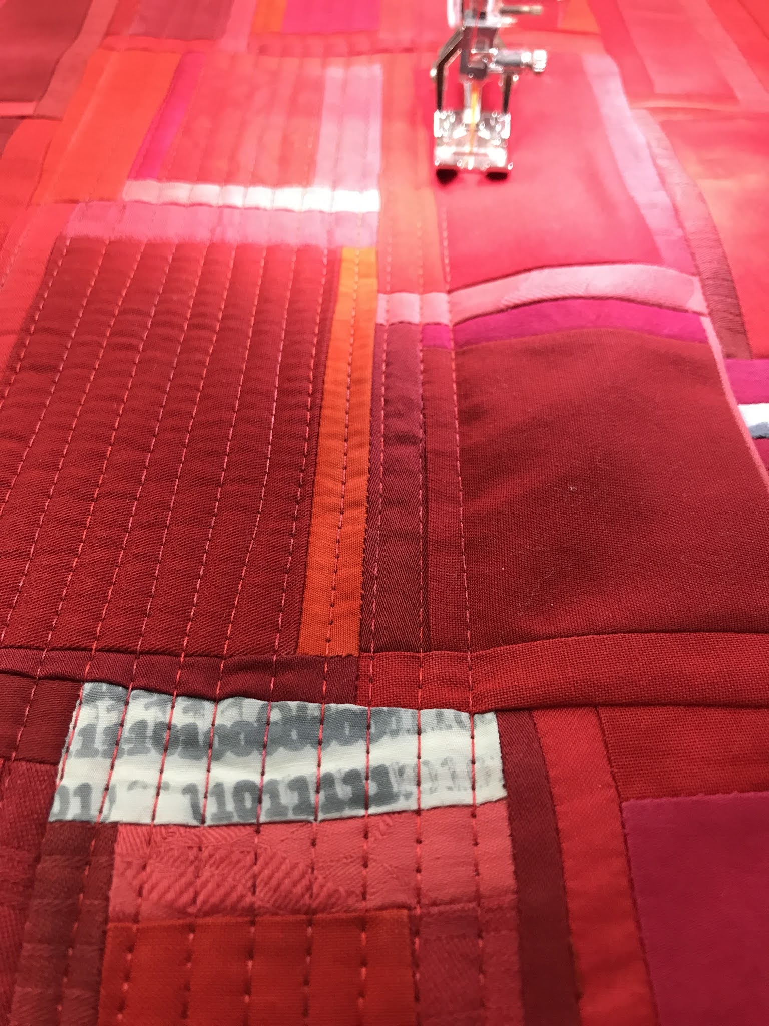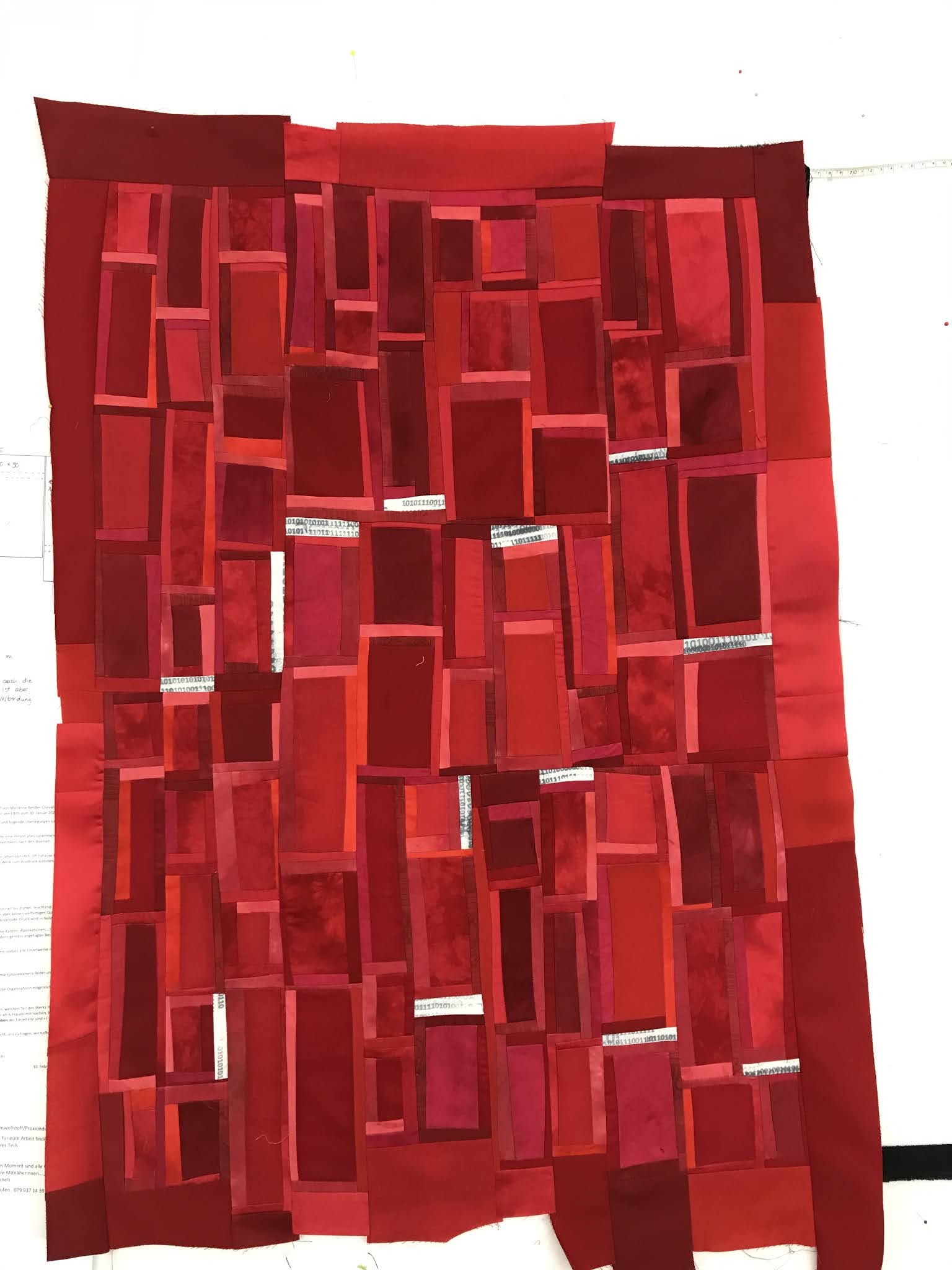 Gegen 40 Quilts wurden für den diesjährigen Challenge «drei gleich weit entfernte Farben im Farbkreis von Itten» an der heutigen Generalversammlung von patCHquilt in Lugano ausgestellt. Auch mein Quilt Stägeli uf Stägeli ab war dabei.