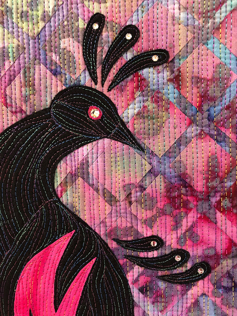 This was made from a panel (like the sunflower). My blending needs a little work--I would like for the edges of the panel inside to blend seamlessly with the outer blocks. Some areas were well-blended, but you can see, in other places, the straight edge of the inner panel.