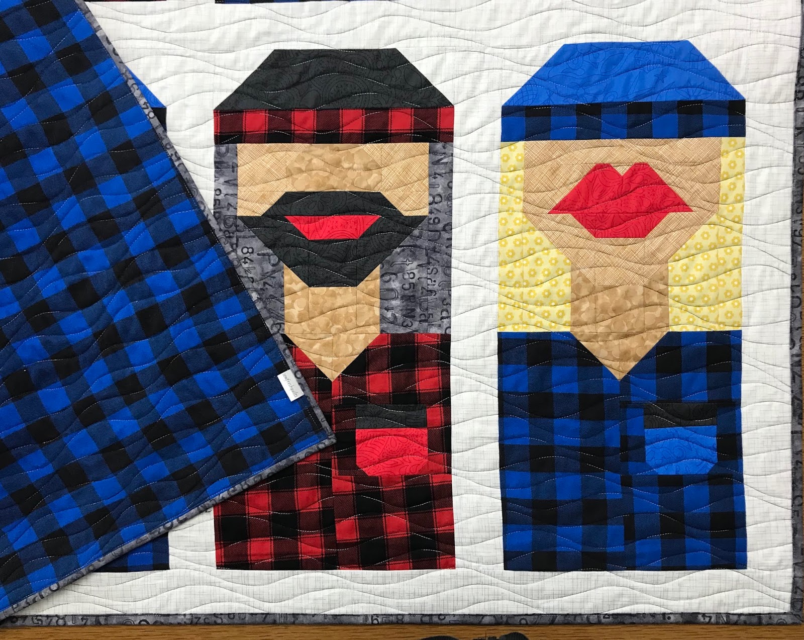 Quilted free-motion with Glide Celery on top and DecoBob Dove Gray in the bobbin. Plaid scrappy binding.