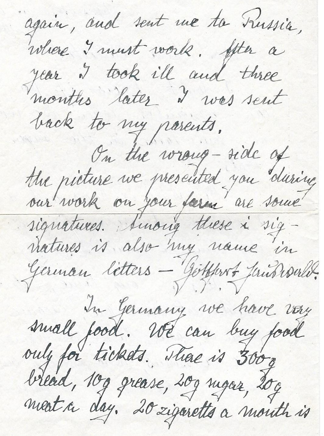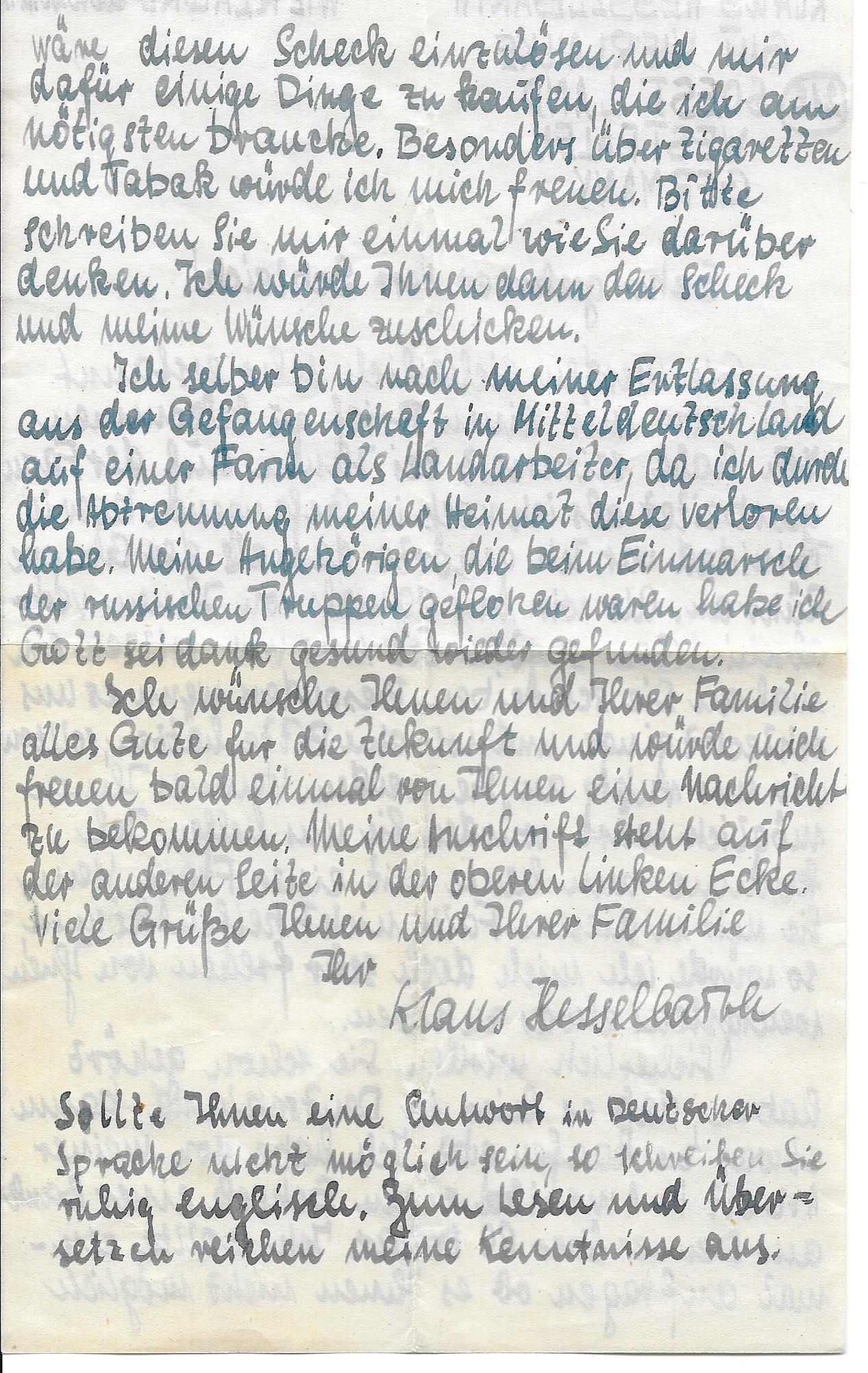 You will be certainly astonished to receive a letter from a former German prisoner of war, who returned home three months ago.