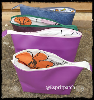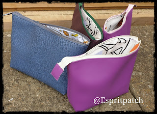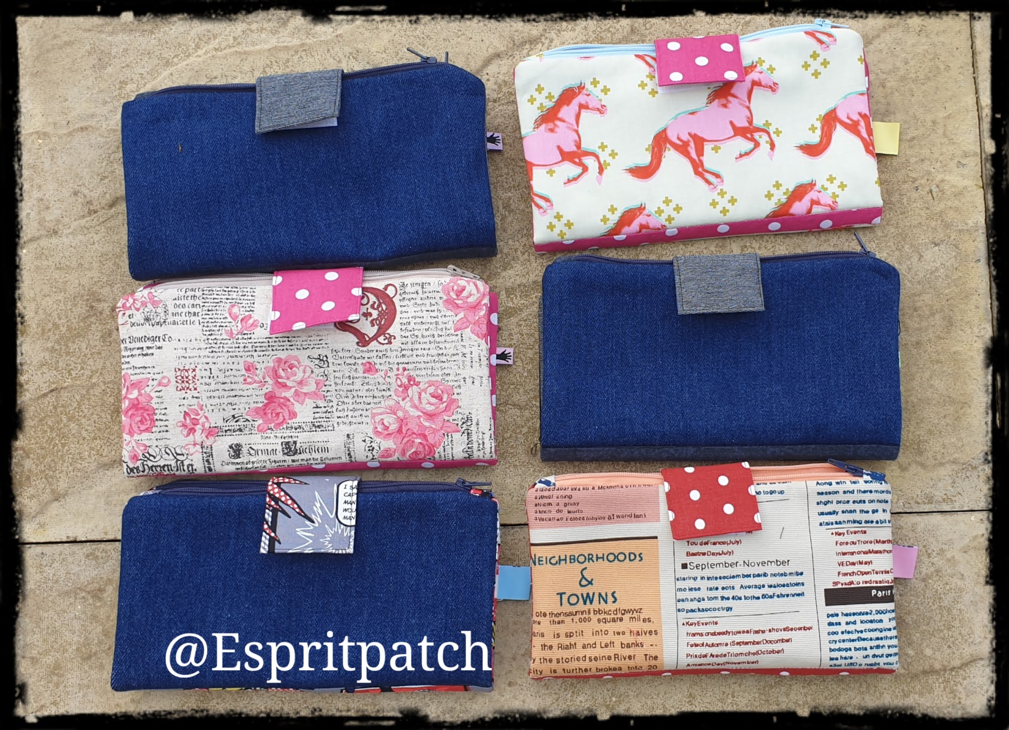All the pouches are finished and gifted now! I made another 7, all with the same fabric at the top and cream zips.