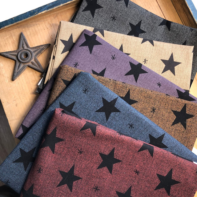 The new Folk Art Star prints are available in fat quarters........a limited number of full collection bundles are available....It won't be too long now until my Primitive Traditions, Folk Art Stars and Primitive Plaids fabric collections arrive in quilt shops everywhere! We've waited so long!