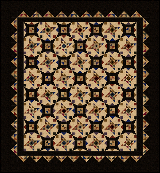 Primitive Traditions is my feature quilt for this collection. It's a beauty with how the black fabrics offset the colors and make them just POP! Primitive Traditions Quilt ~ Designed by Pam Buda