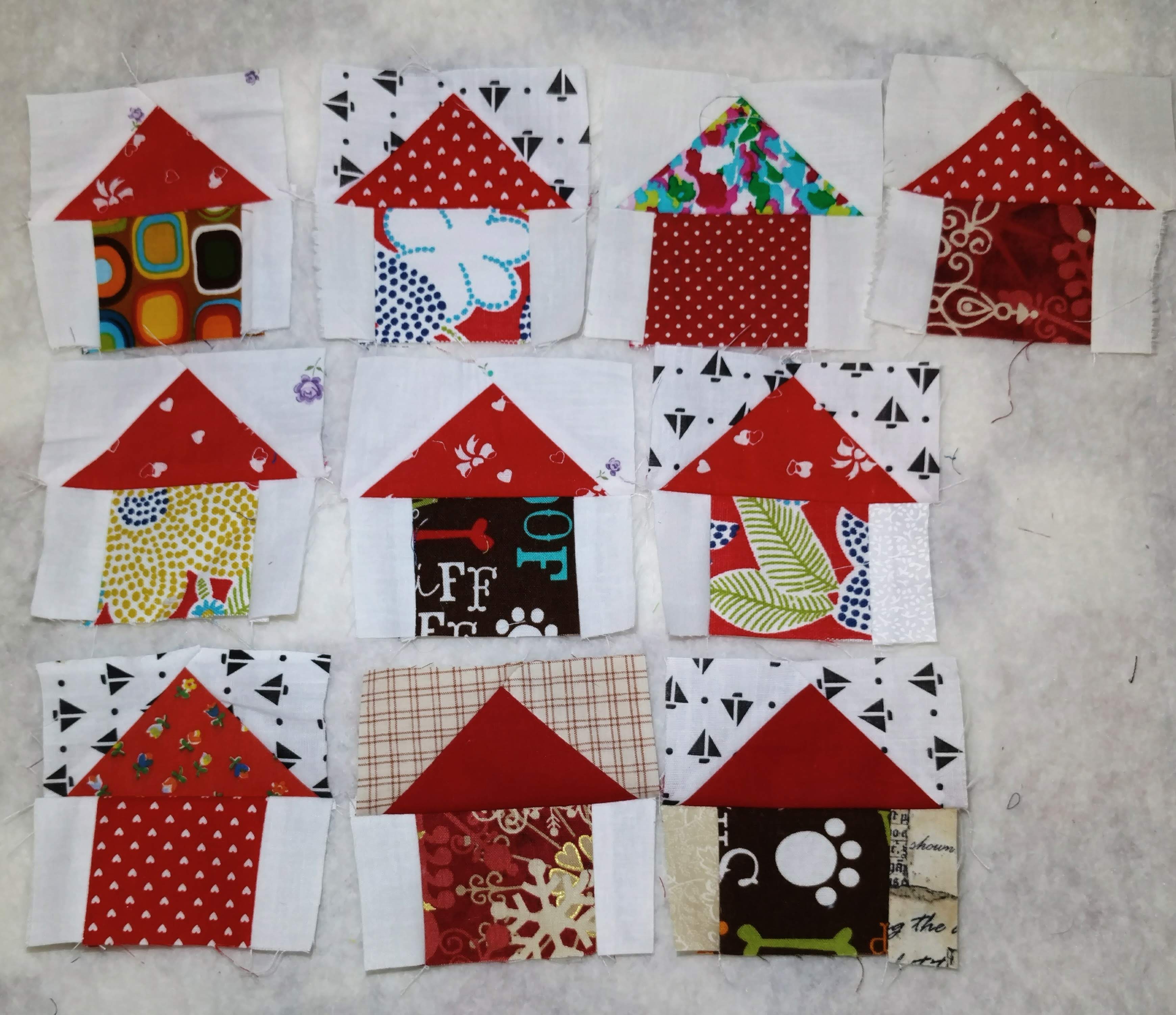 It was easy to grab the 2 inch strip drawer and cut for tiny houses. I did decide to add other colors to the red. If there was a speck of red, anywhere, I cut it.