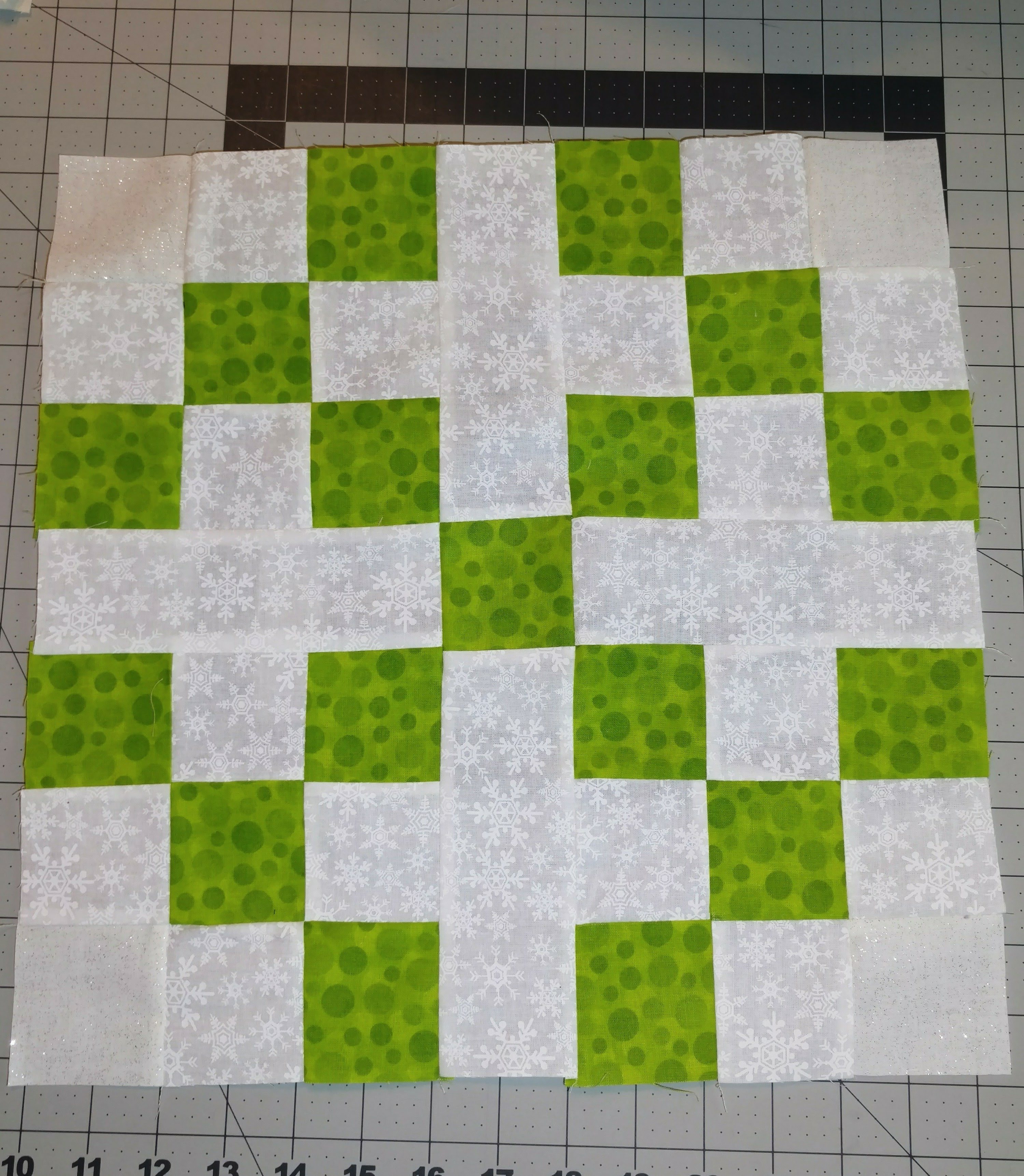It doesn't look like I will have a finish for March from my green ufo list, but, I did move Christmas sparkle along to almost a top. I did decide to make and add 3 more blocks to the quilt. I haven't worked on the green brackets for full stop quilt that Angela is doing. And I didn't get the table runner ...
