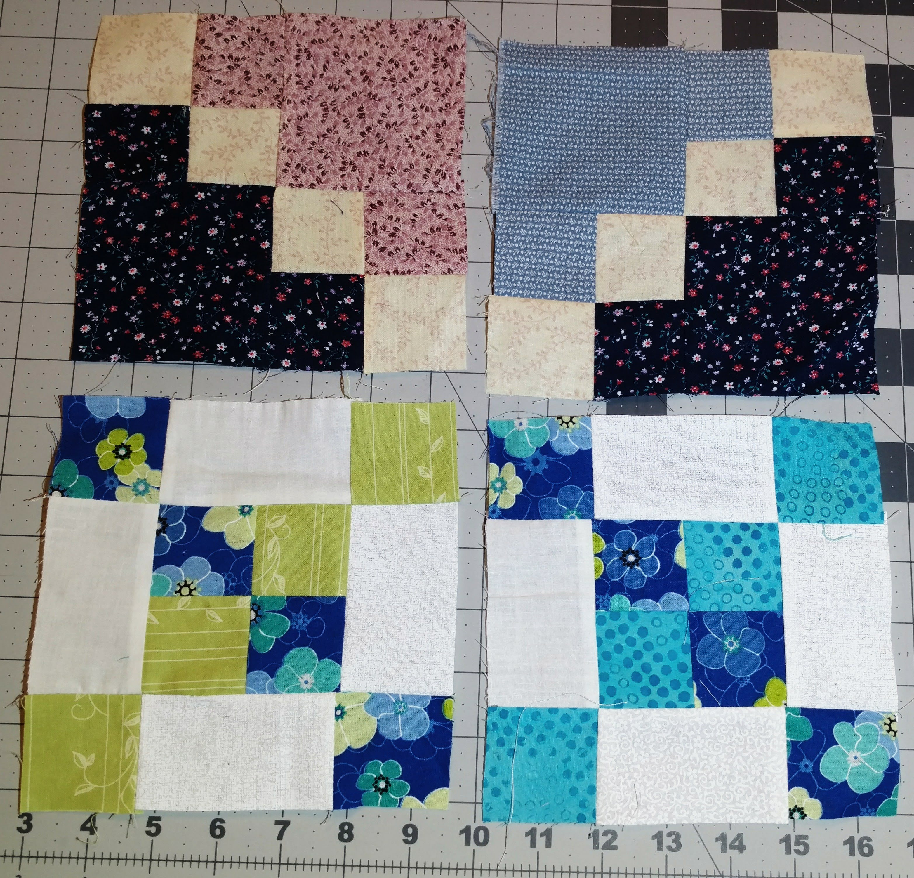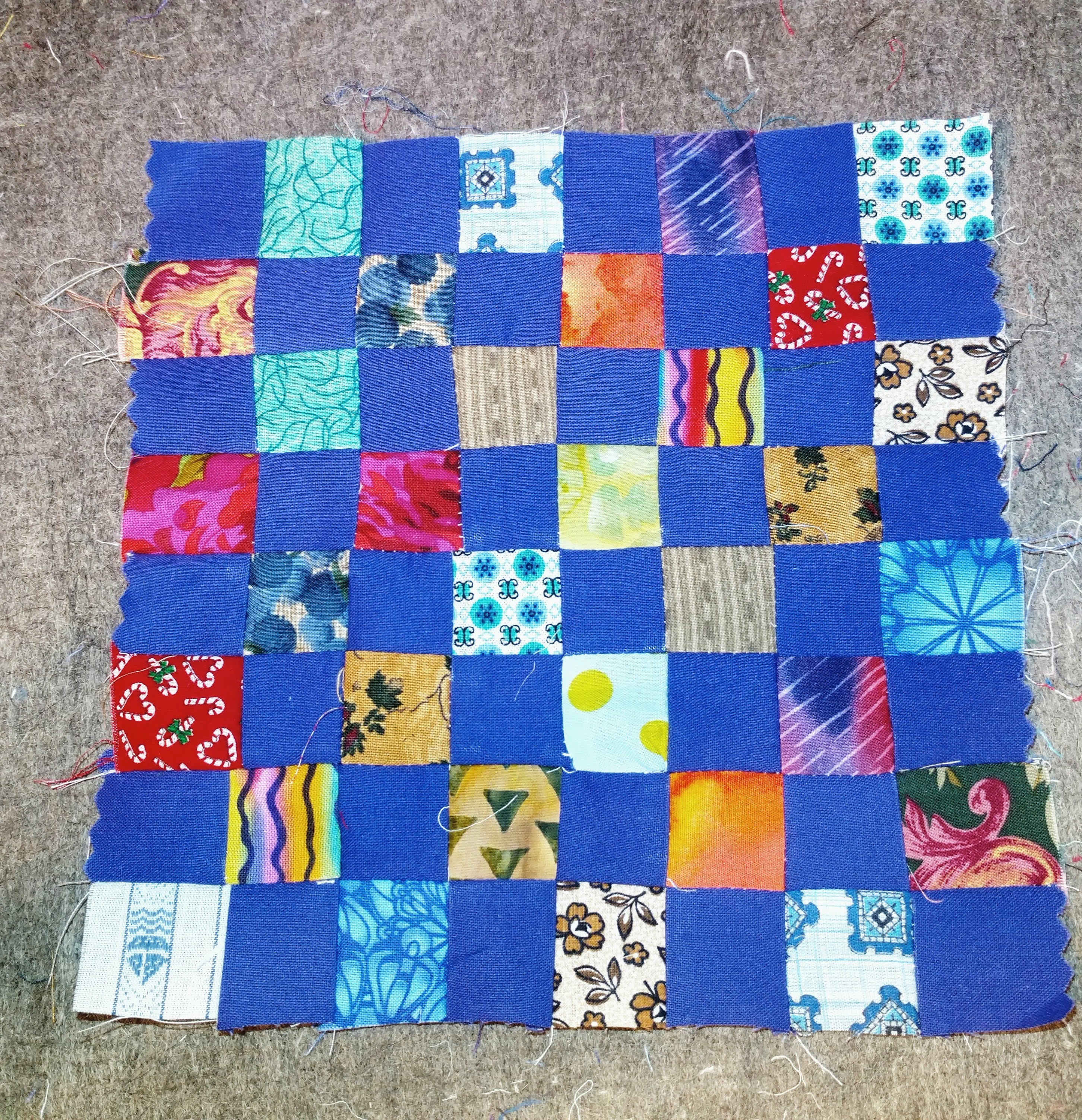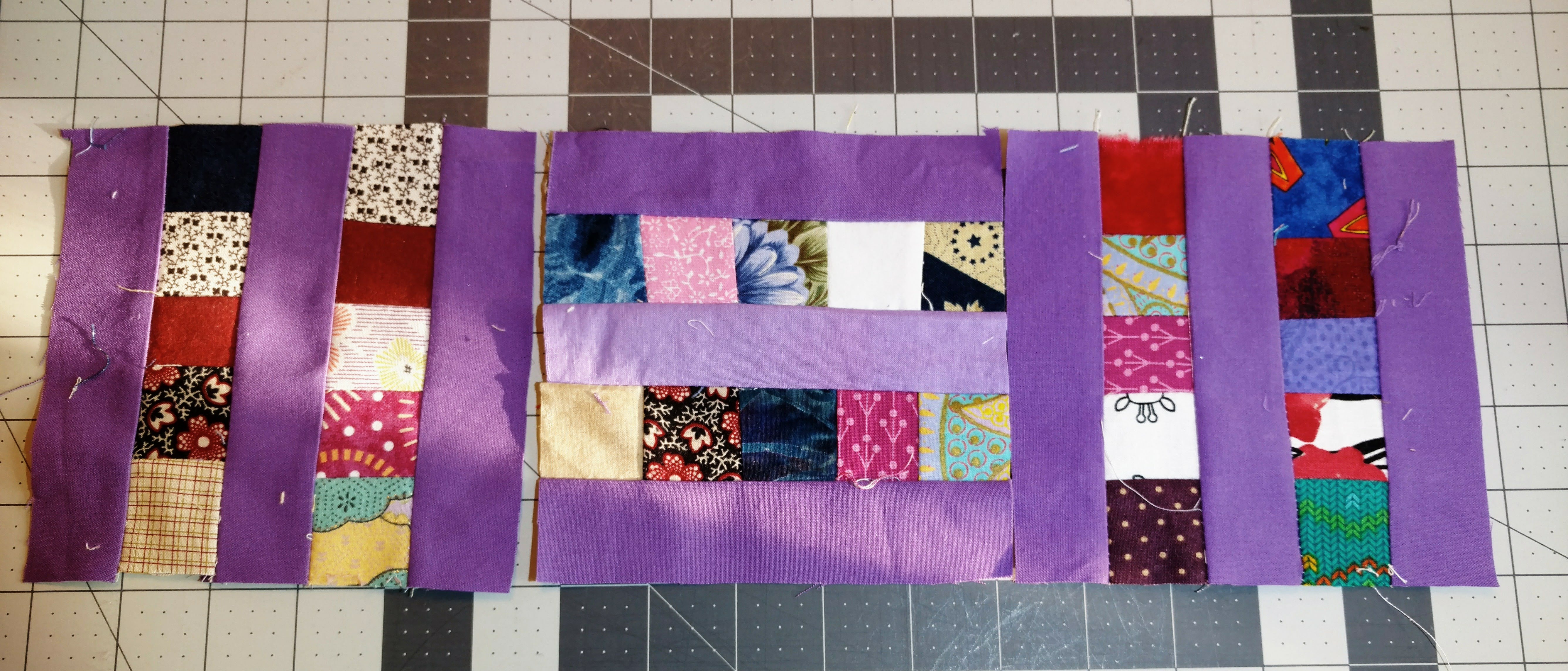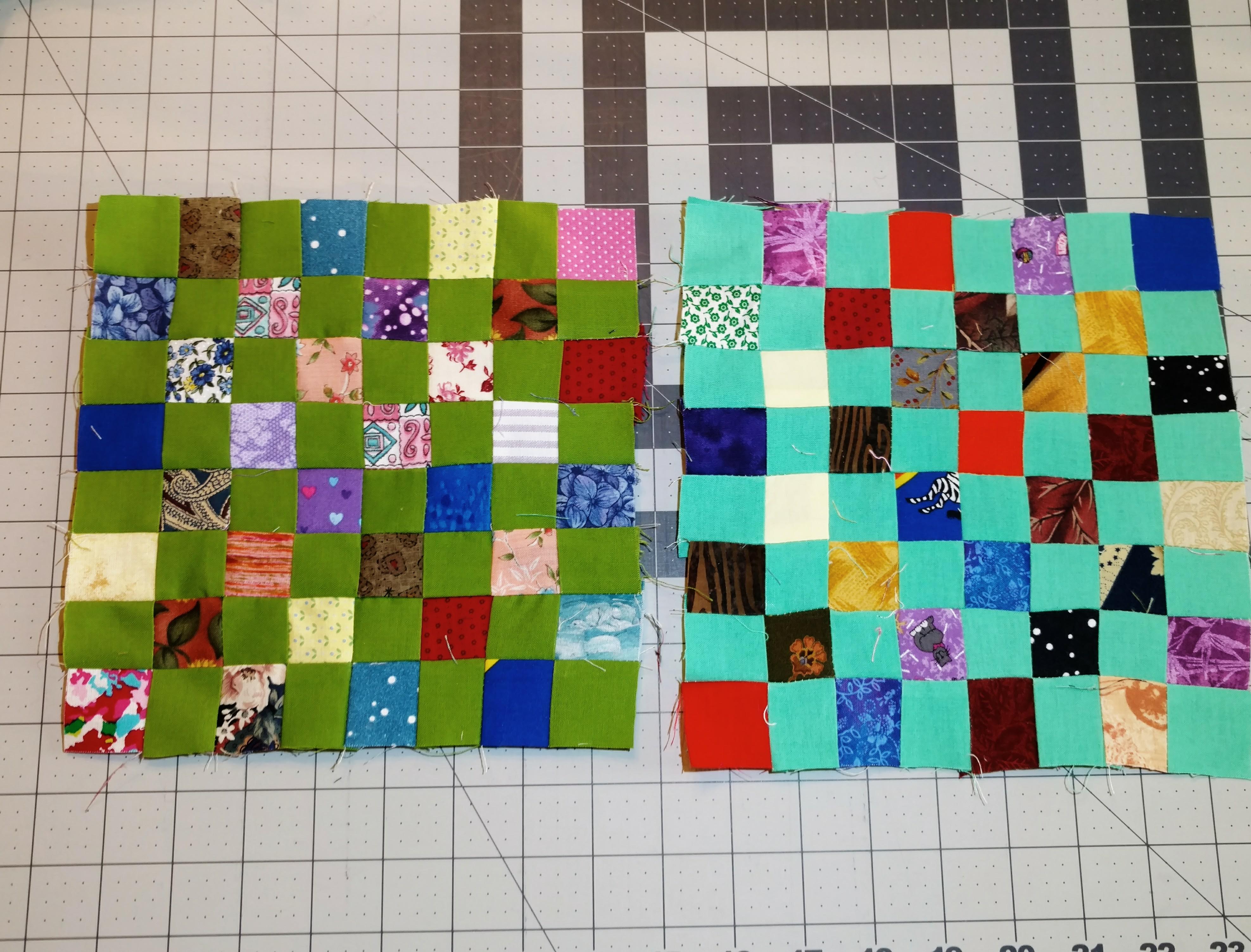 I had enough blue pieces already cut for the waffle stamp blocks. I did not need to cut anymore, so, I was able to get these sewn quickly for the start of the month for the rainbow scrap challenge at so scrappy.