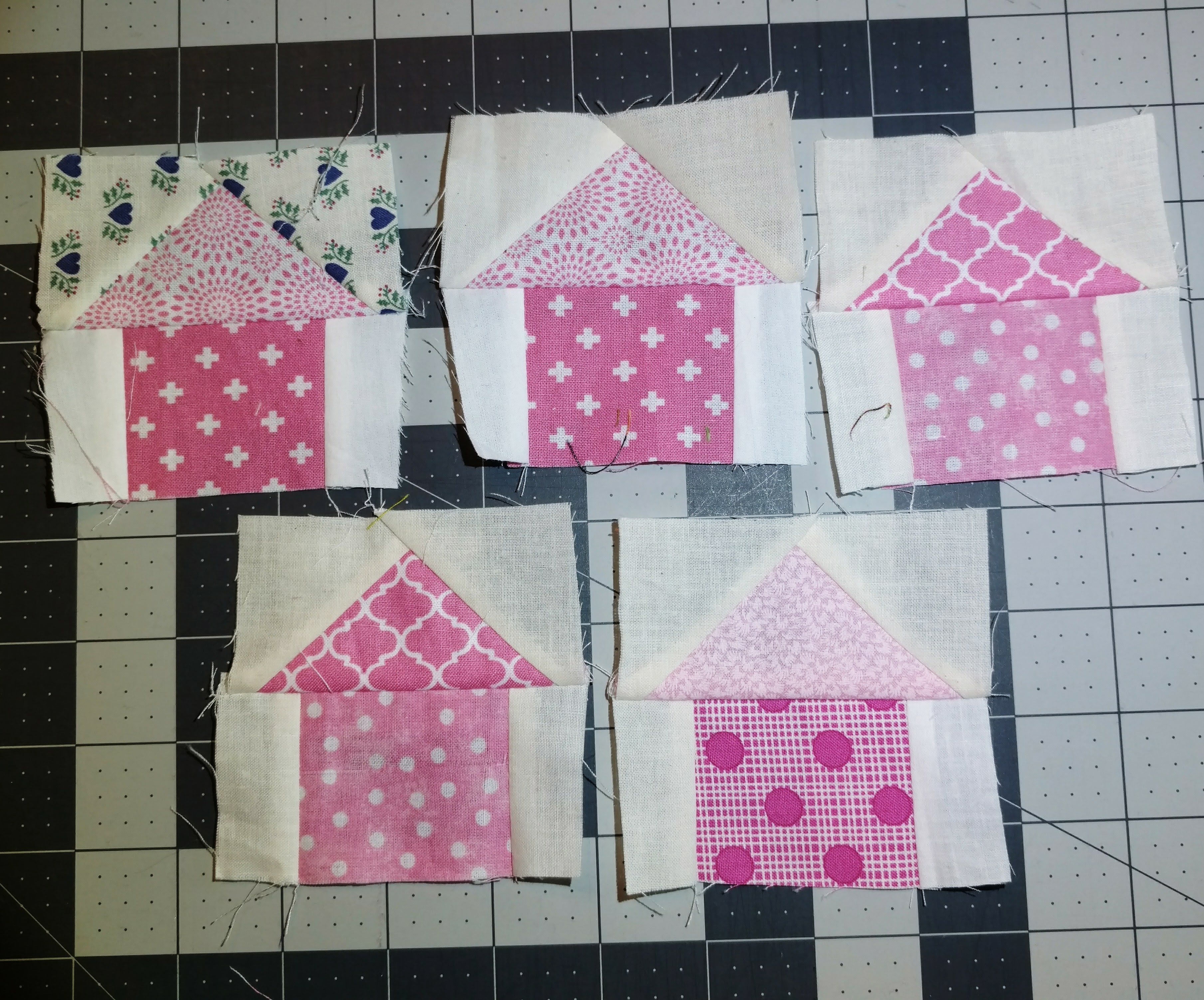 I made the tiny houses from 2 inch strip bin. I look for the shortest strip and cut it 2 1/2 inches and 3 1/2 ...