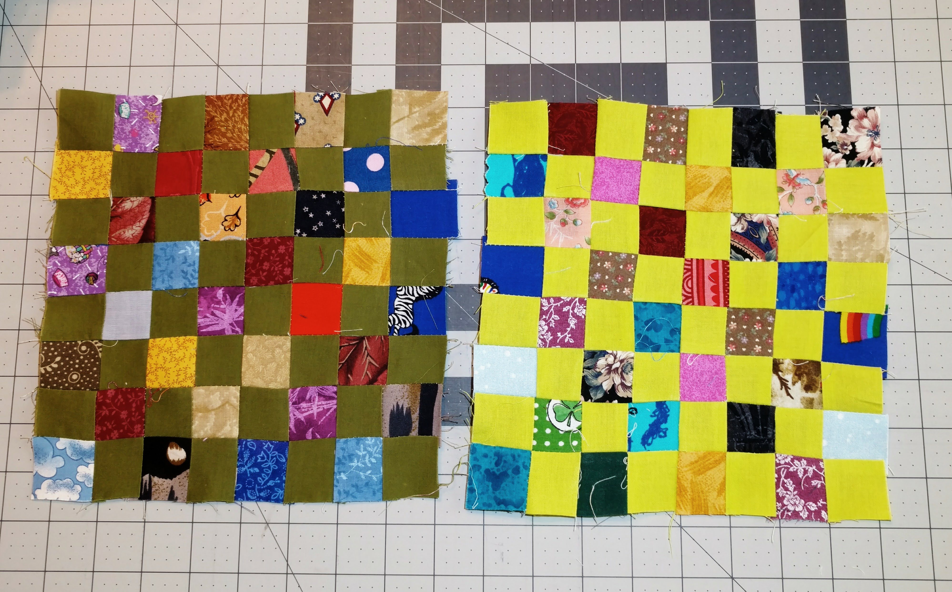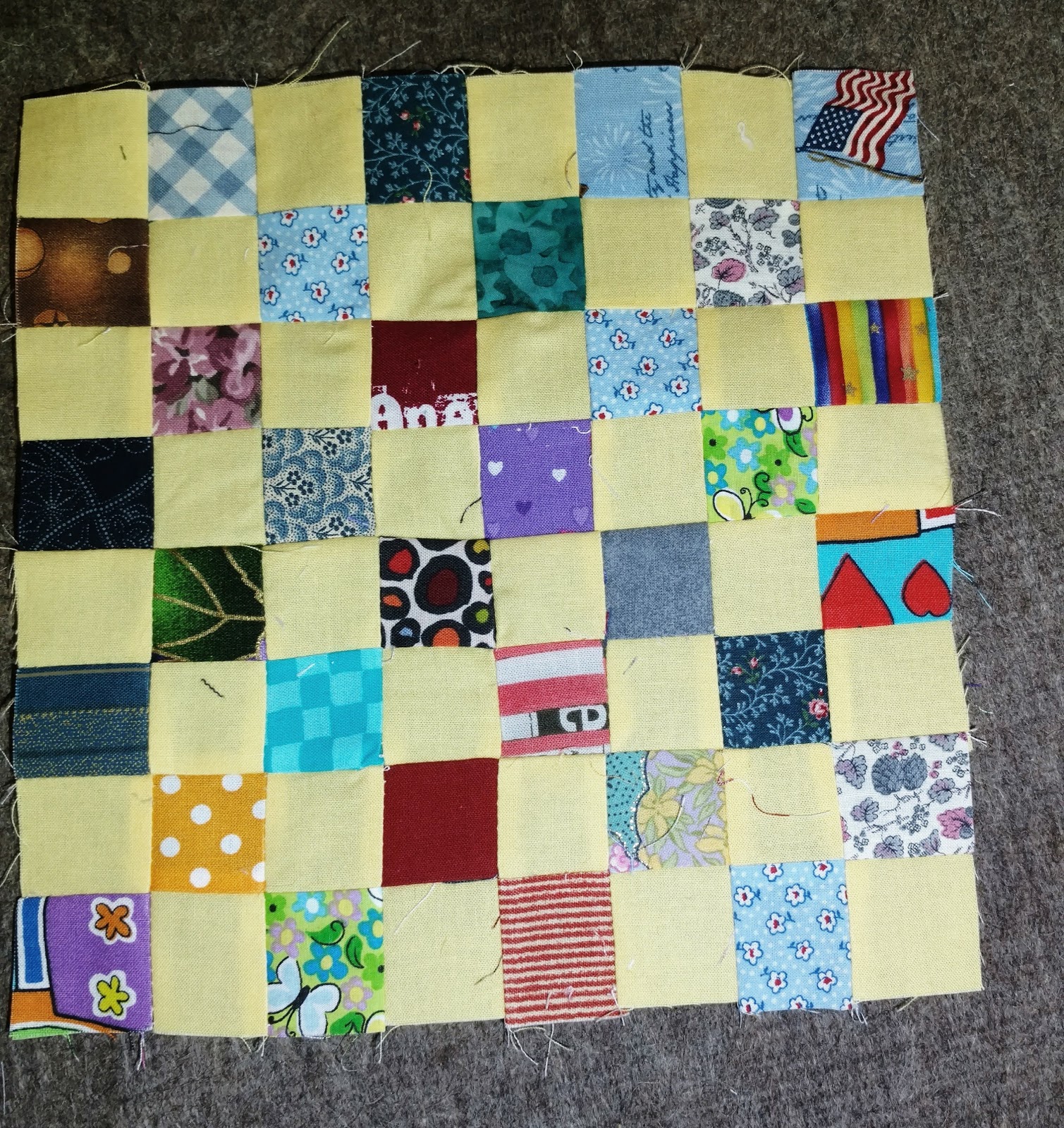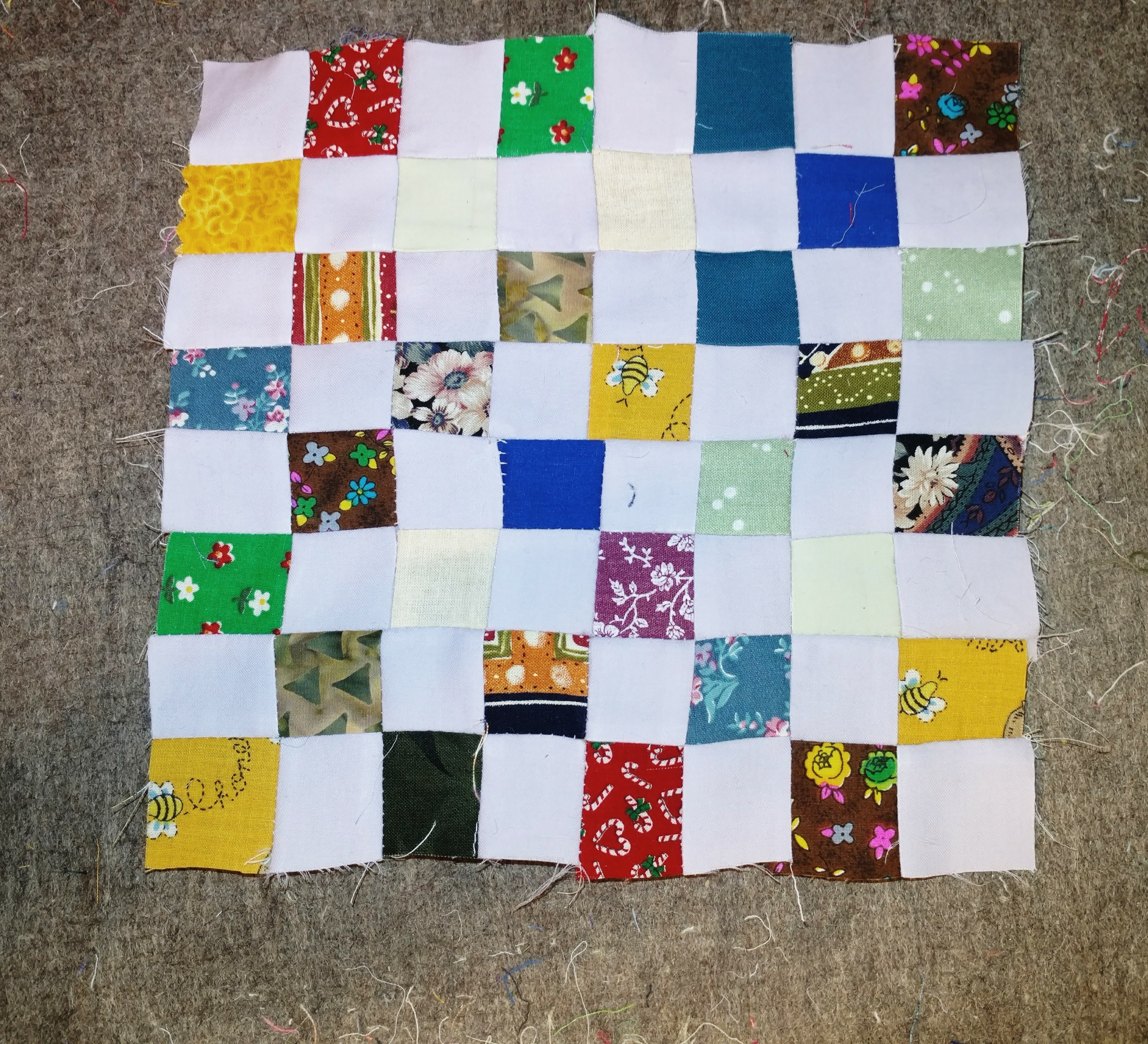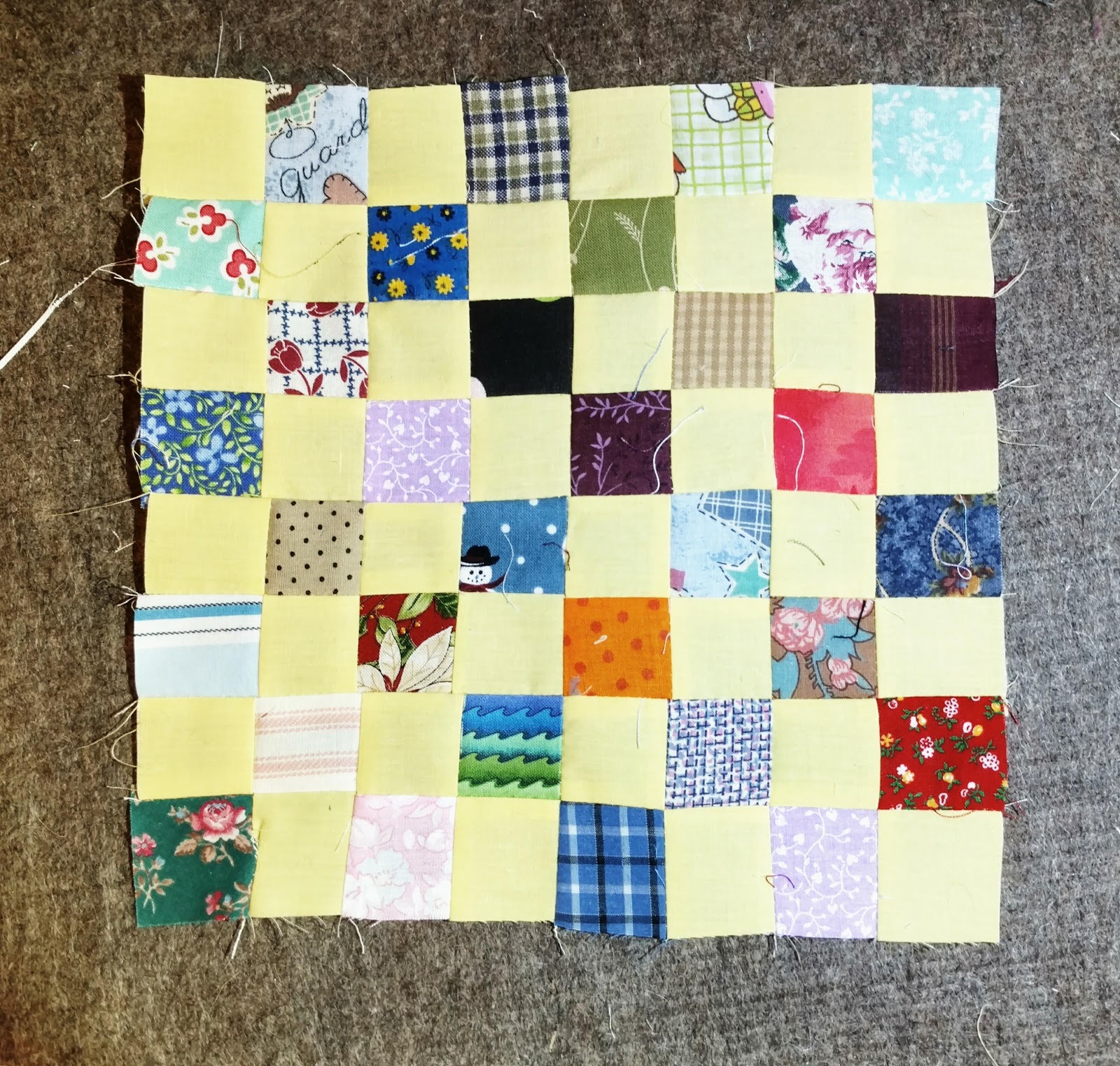 read moreI have been working with tiny 1 1/2 inch squares that are sitting next to my sewing machine. I collect them, until, I think I can make either waffle stamp blocks or postage stamp psp20/21. I am always amazed at how many are in the stack. The stack of squares doesn't look like much, but it moves 2 quilts along. I have the solid pieces already cut and waiting in a drawer nearby.