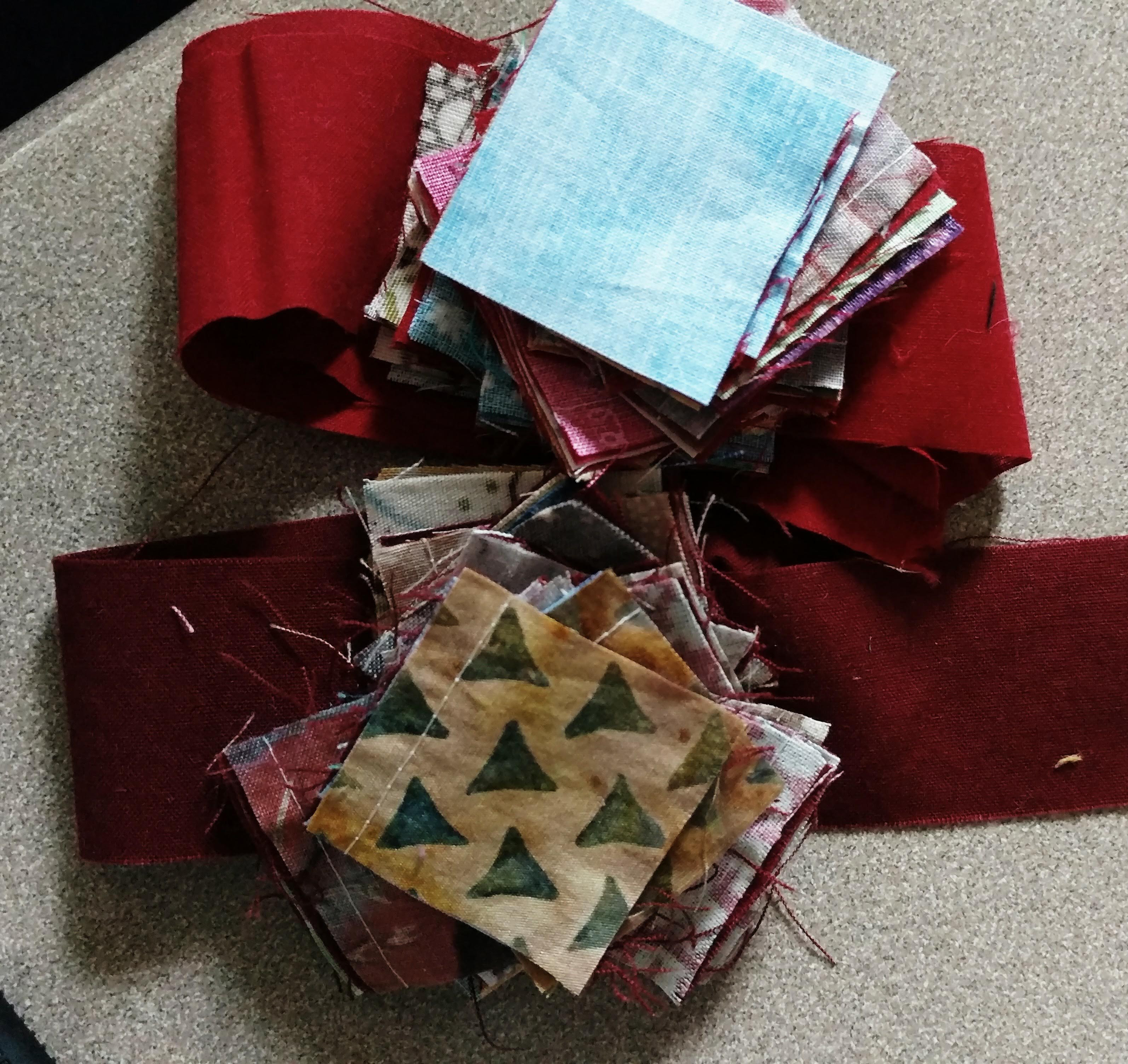 My blue scrap chunk basket is full, but, I have a 2 gallon zip lock bag of odds and ends and leftovers that I need to go through before I cut, hoping there is enough room in the basket for the new.