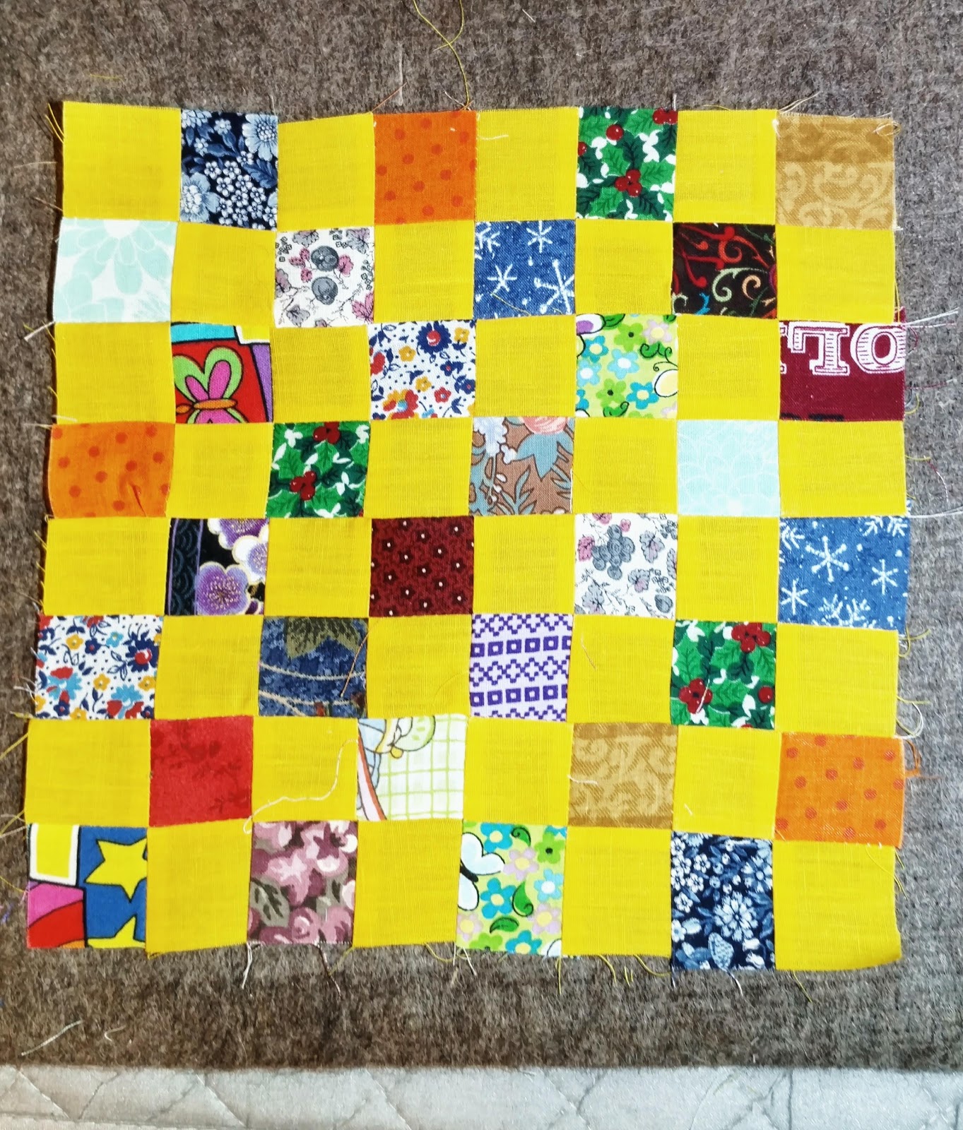 I overdid the yellow waffle stamp blocks , but, that gets me to a larger number already done for the whole quilt. These are very easy to do and a bit addictive.