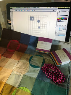 Casting around for ideas, I remembered a set of three little pieces I'd made back in the '80s that I'd also made with 2" multicolored squares. These were a color theory experiment. All have the same base with varied ideas for coloring the circle shapes. #1 is ...