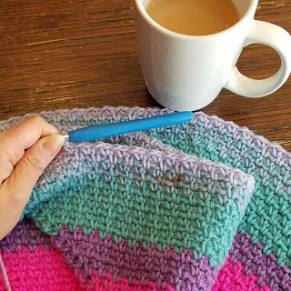 I've been enjoying simple crochet projects for quite a while. I had a single cake of Lion Brand Mandala yarn and needed a quick to work project. I grabbed my hook and got stitching.