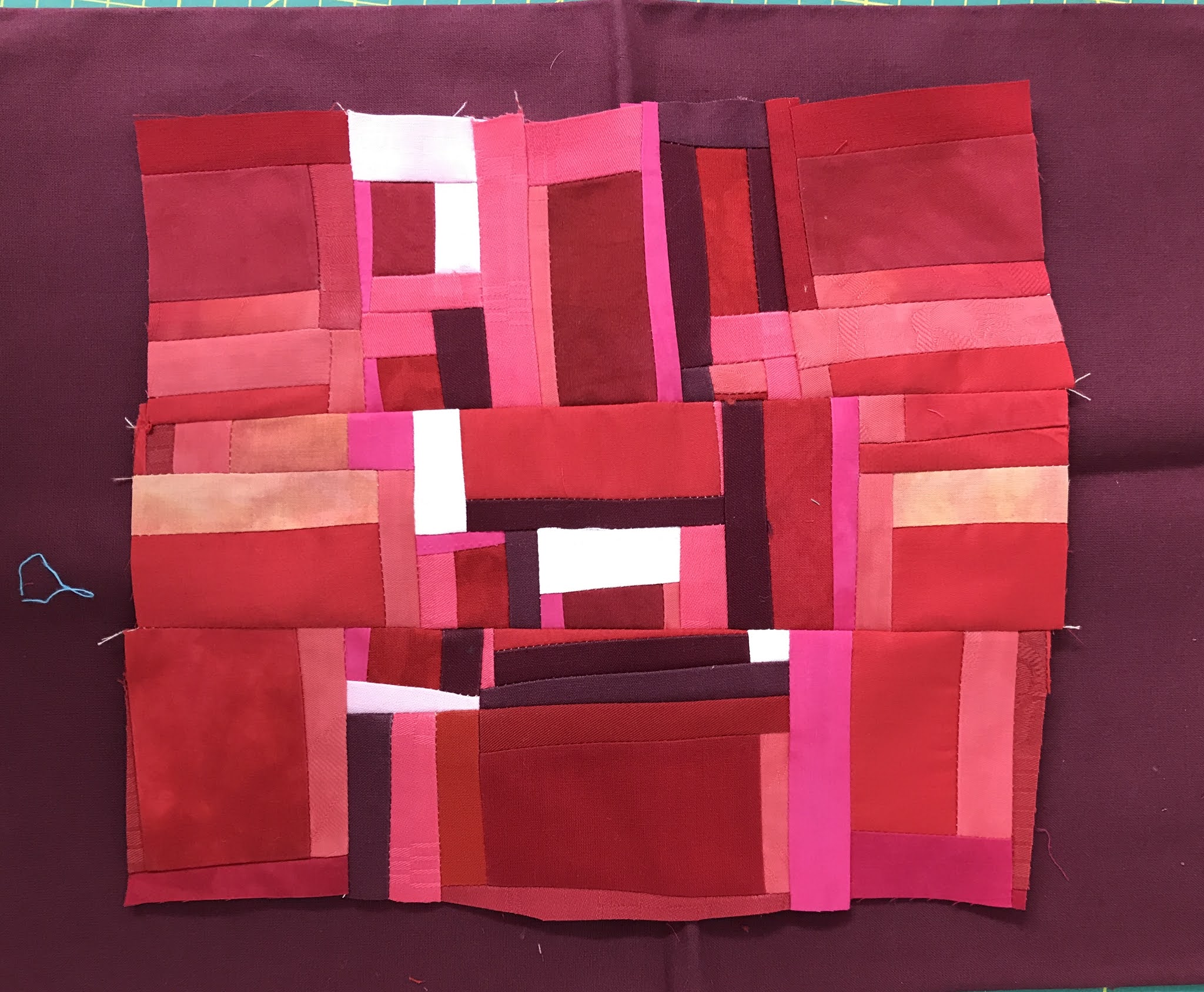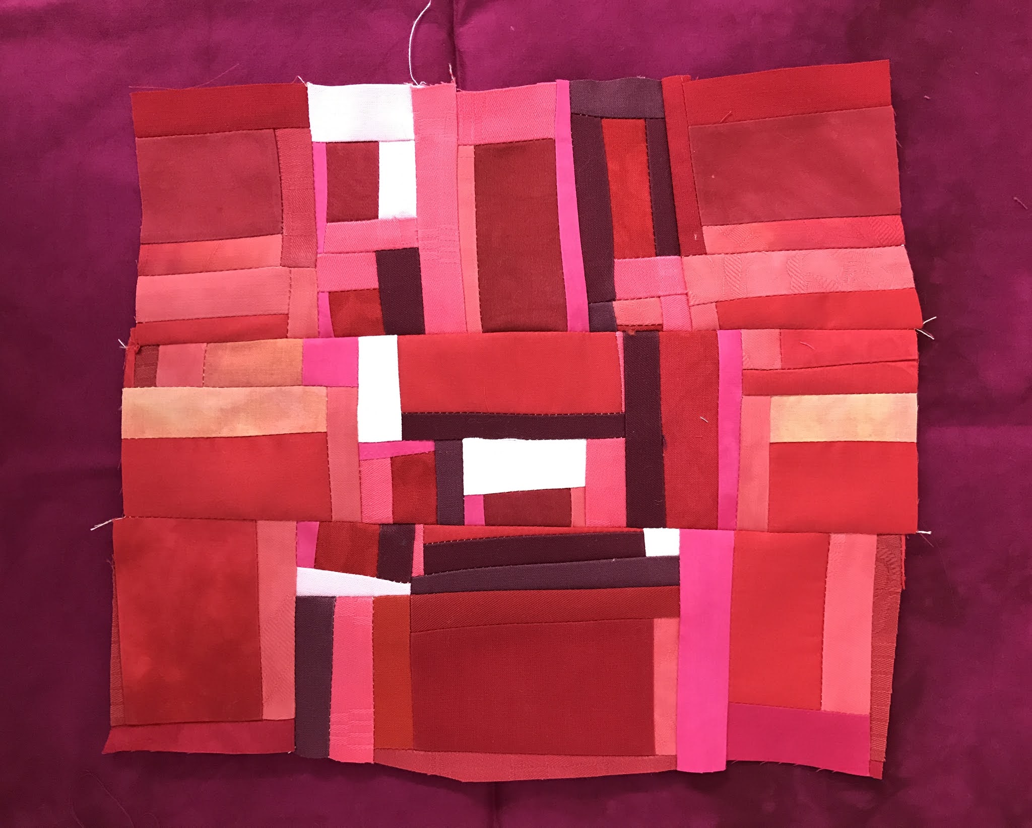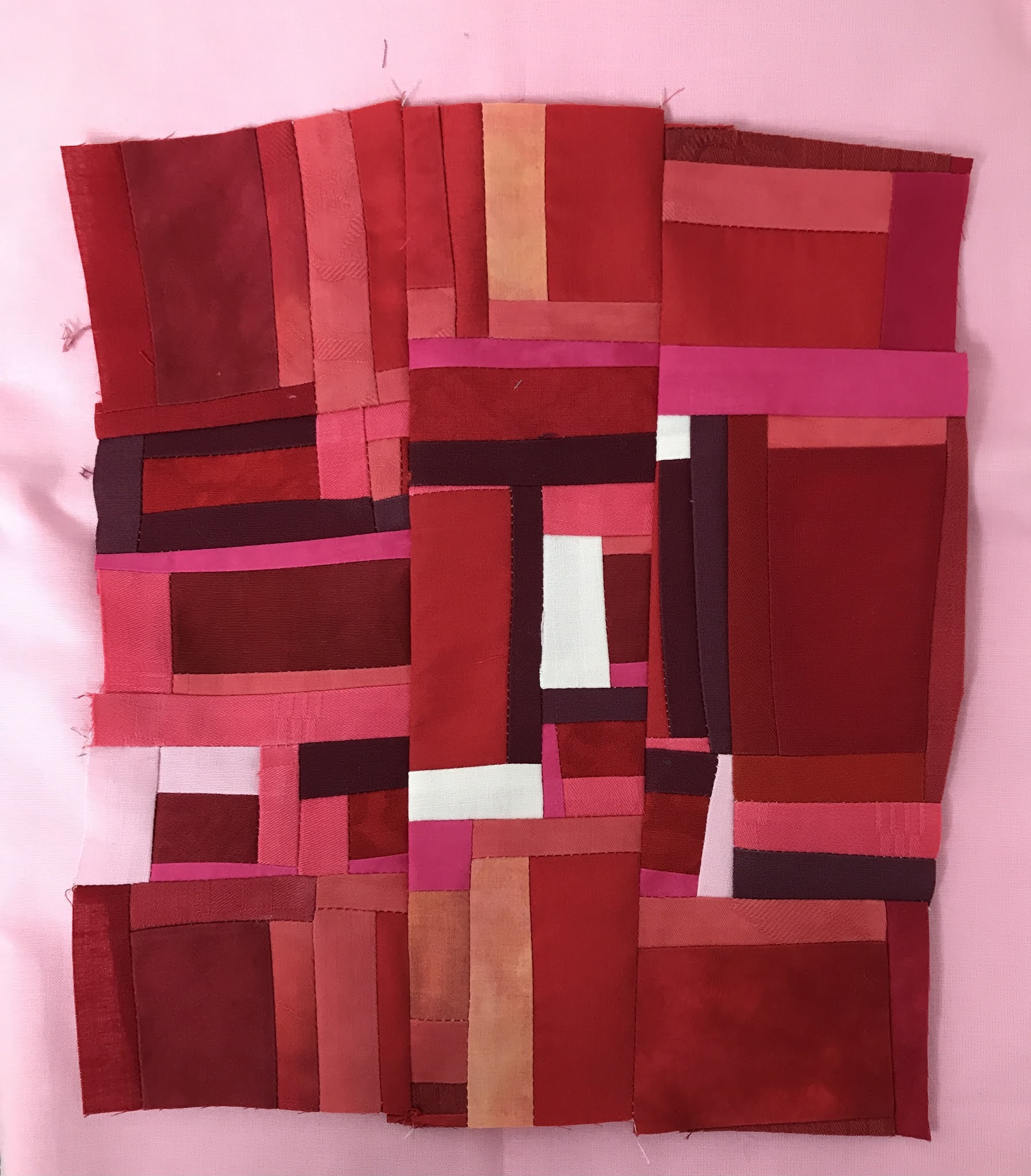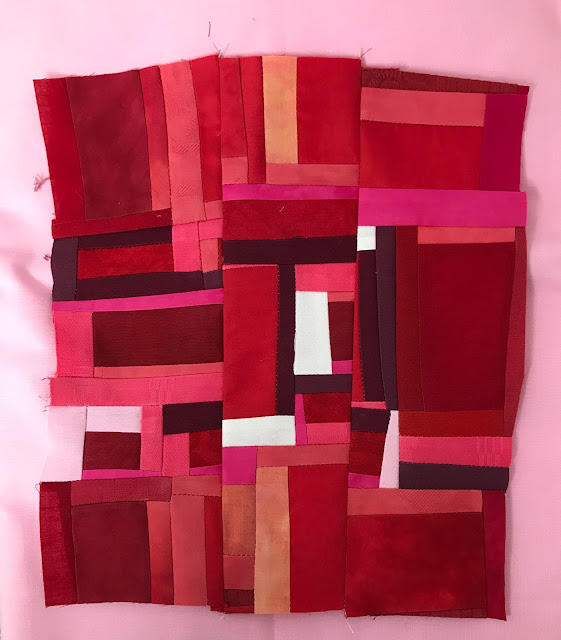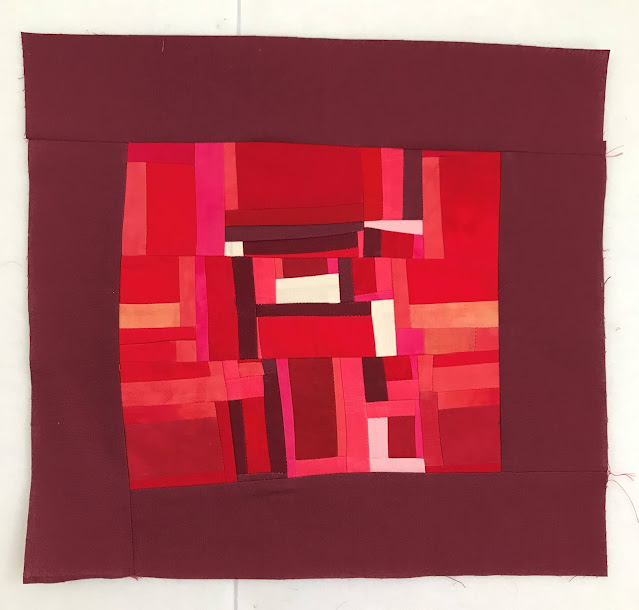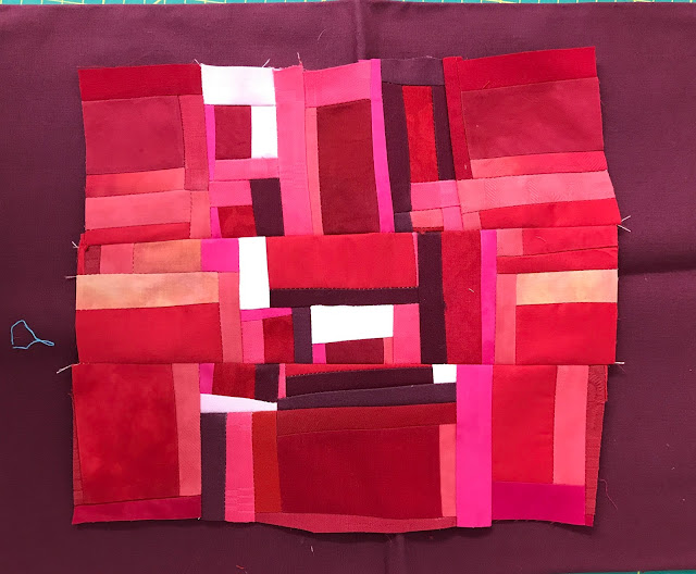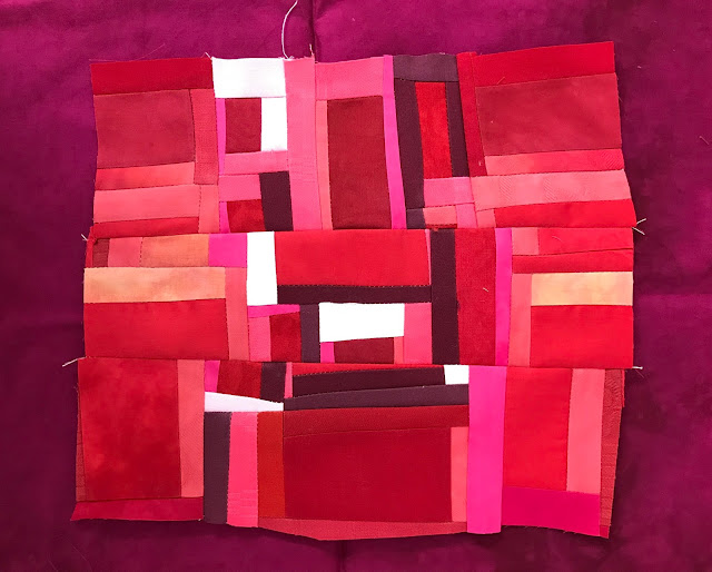 read moreJag hade tänkt att ta en paus från alla utmaningar nu när SAQAs 100 days var avslutade men frestelsen blev för stor. Nu pågår SAQA - Jump into June och på den vägen är det. Jag bestämde mig för att göra något helt annorlunda och improviserat à la Maria Shell. Började i stor stil med svart/vita remsor, det svarta var handfärgat i två omgångar men fick inte det djup jag hade önskat. Nu blev det bra ändå, det fungerar här annars hade jag färgat det en tredje gång, någon har sagt att Nancy Crow alltid färgar sina tyger tre gånger ...