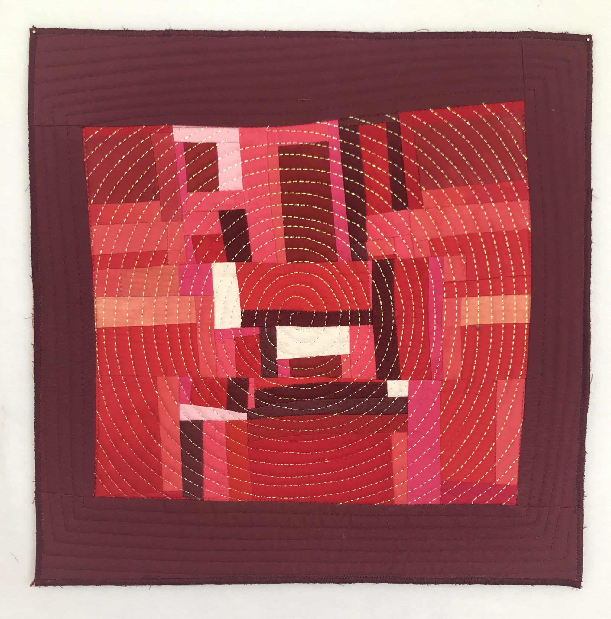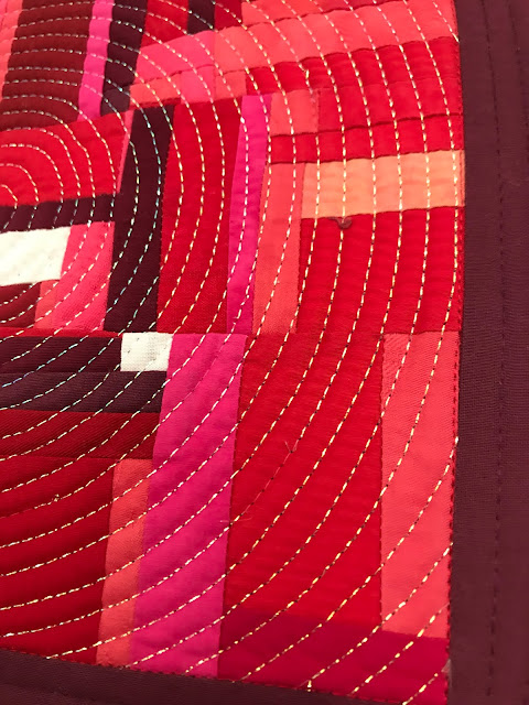 read moreI have finished and submitted to my first SAQA (Studio Art Quilt Associates) exhibition. The Northern California/Northern Nevada region issued a call last summer for a juried regional exhibition entitled Prism Play. From the start I loved the vision for this exhibition. The quilts are all required to be 15" wide by 45" long and monochromatic, following one of the color cards from Joen Wolfrom's Ultimate 3-in-1 Color Tool. The selected quilts will hang in multiple full color spectrum groupings during the exhibition.