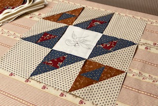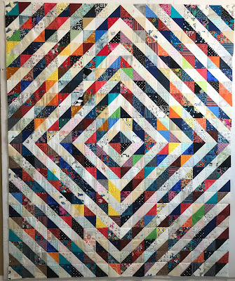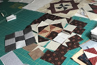 A Little something something to hang from a door knob for Valentine's Dayor perhaps line a little basket, This measures 6 x 12 approximately but you can make yours any size you want it to be. I just used 3 inch squares from my scraps and cut in half diagonaly and sewed the triangles together to make hourglass blocks, I used 1 1/4 inch single binding strip. You can make flying geese or just squares if you want, just have fun. Quick and easy,