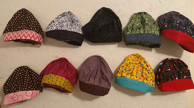 Oh my goodness, what an ordeal it was for me to get these scrub hats completed! I'll just leave it at that....